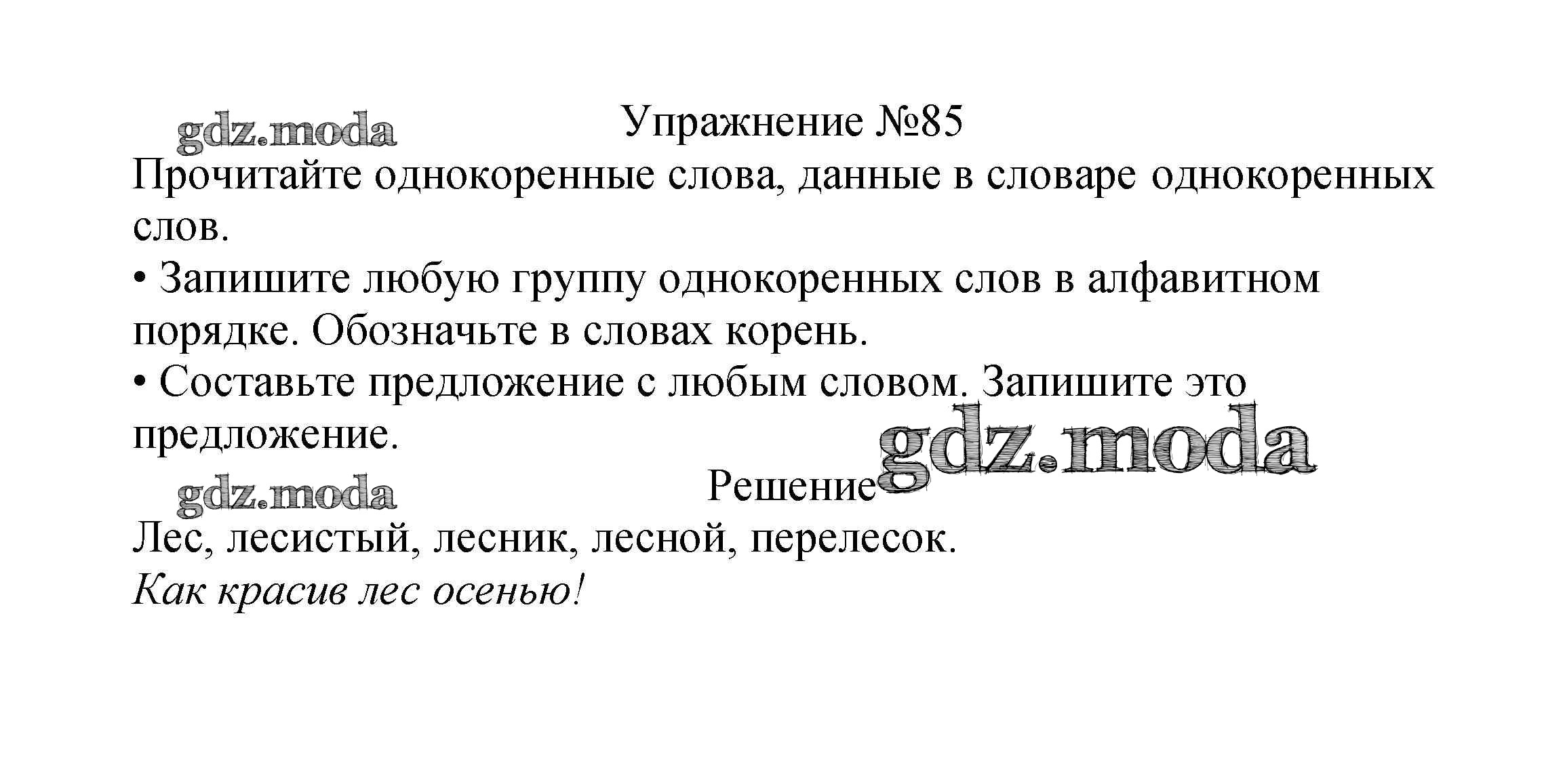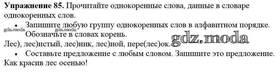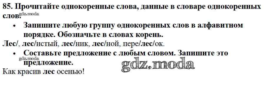 ОТВЕТ на задание № 85 Учебник по Русскому языку 2 класс Канакина Школа России