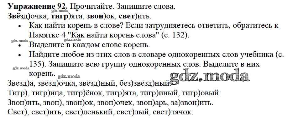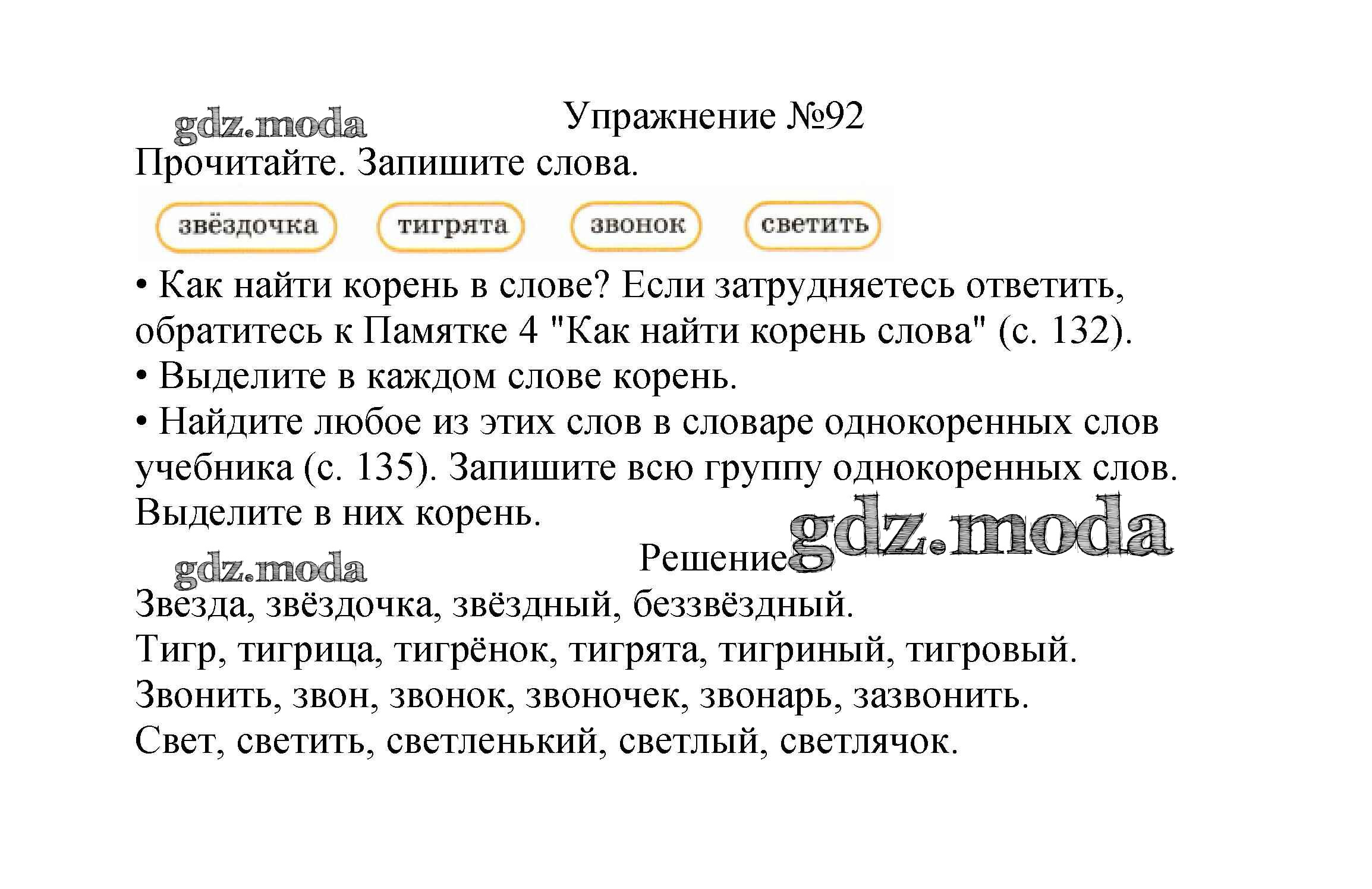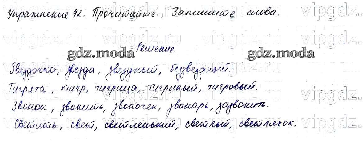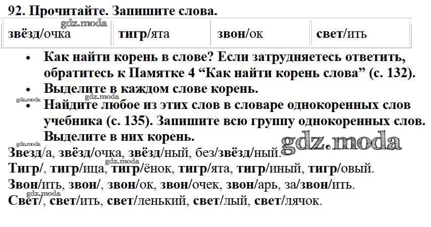 ОТВЕТ на задание № 92 Учебник по Русскому языку 2 класс Канакина Школа России
