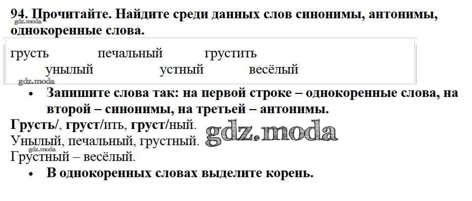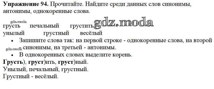 ОТВЕТ на задание № 94 Учебник по Русскому языку 2 класс Канакина Школа России