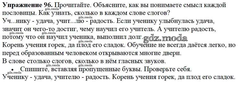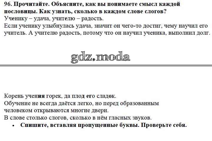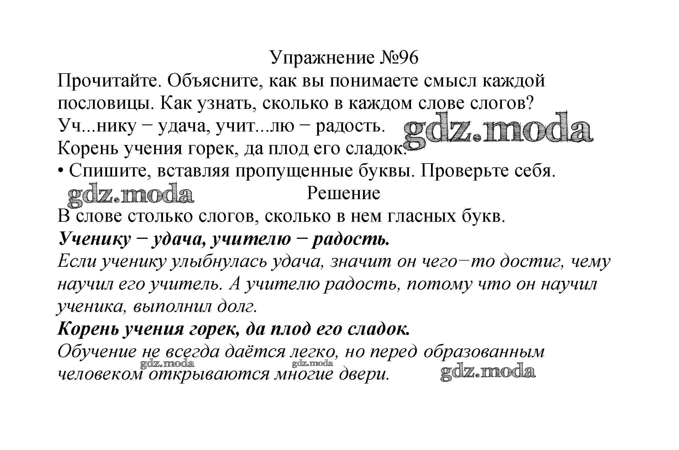 ОТВЕТ на задание № 96 Учебник по Русскому языку 2 класс Канакина Школа России