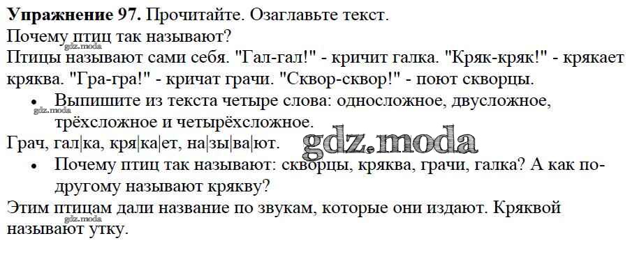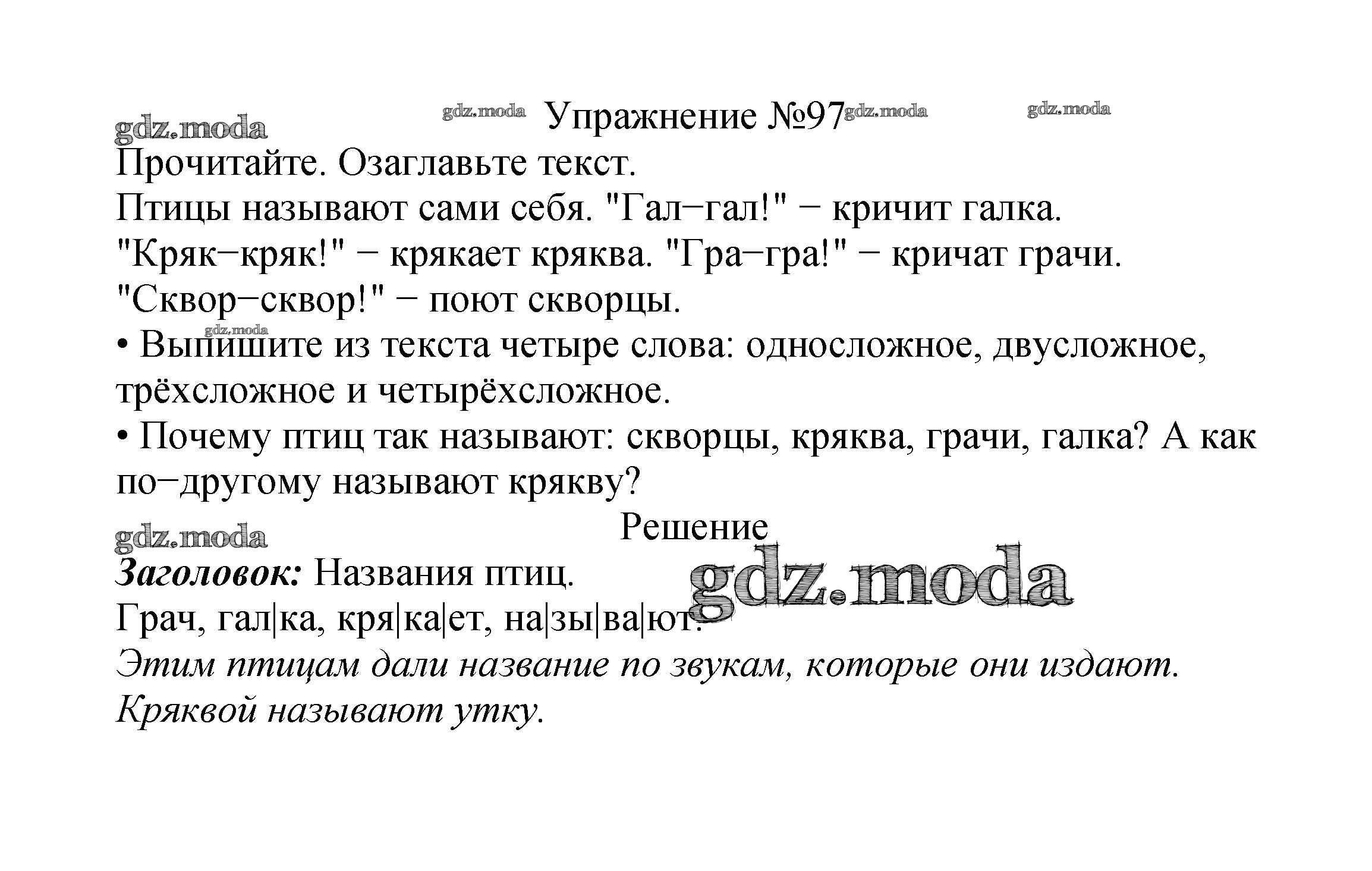 ОТВЕТ на задание № 97 Учебник по Русскому языку 2 класс Канакина Школа России