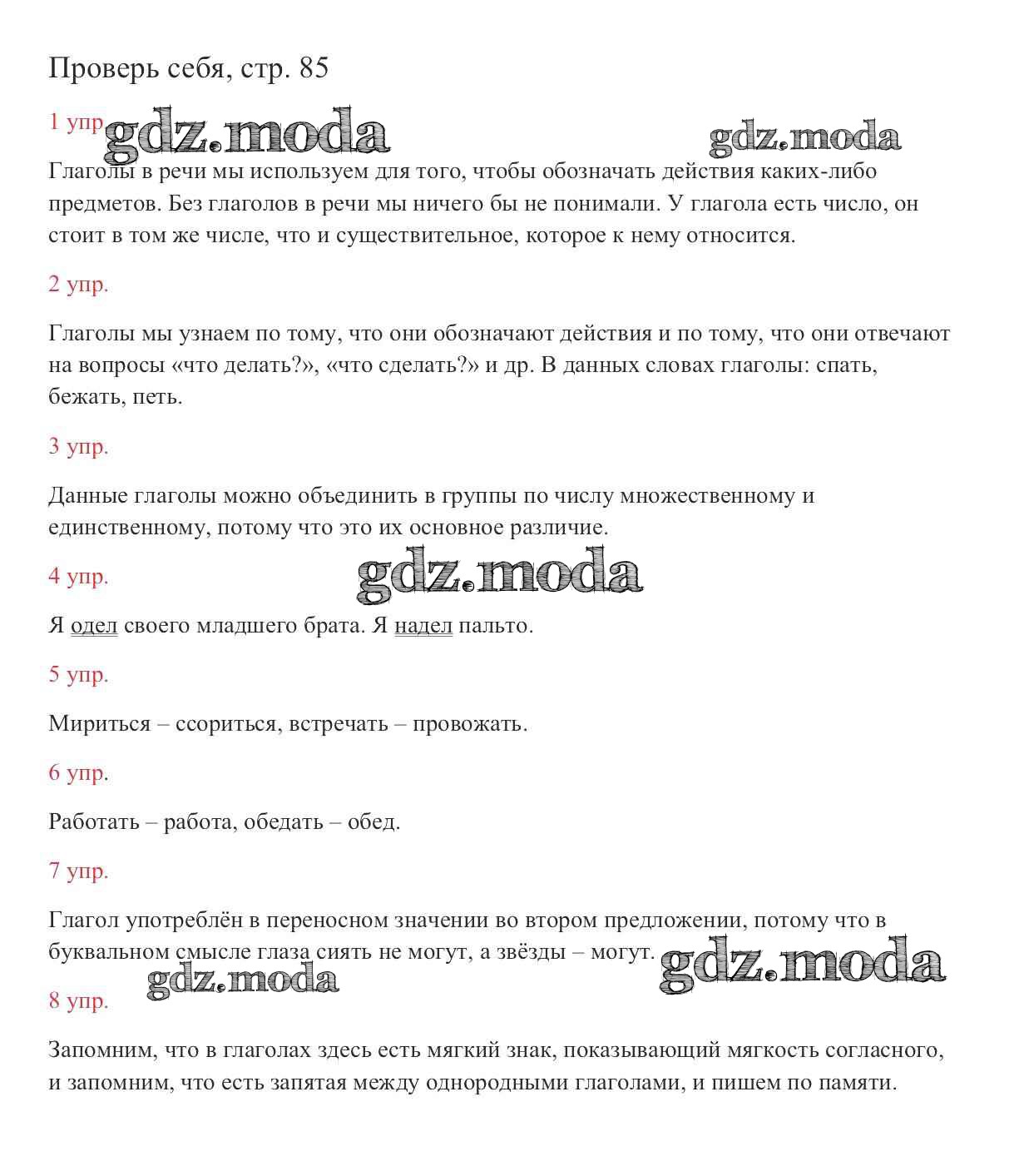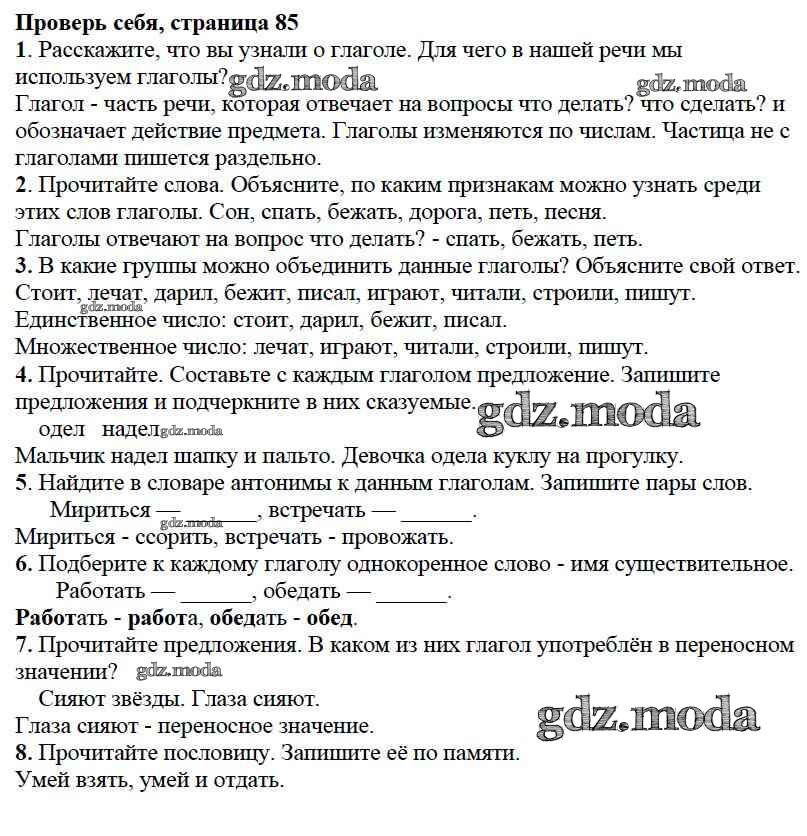часть №2 (упражнение) / проверь себя / стр. 85