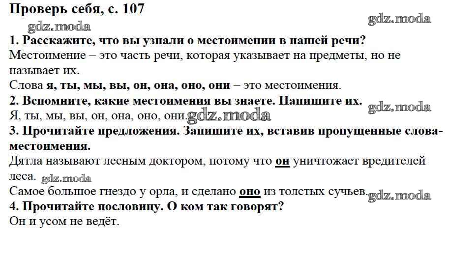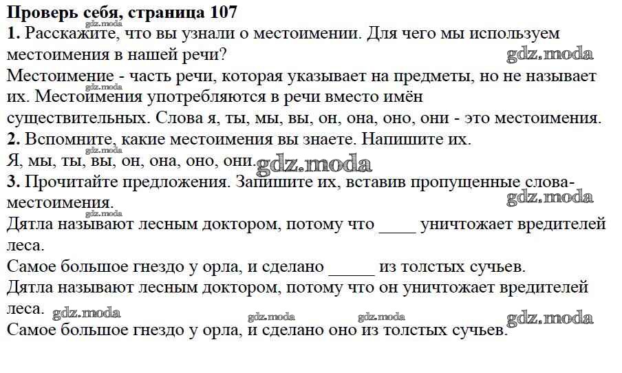 часть №2 (упражнение) / проверь себя / стр. 107
