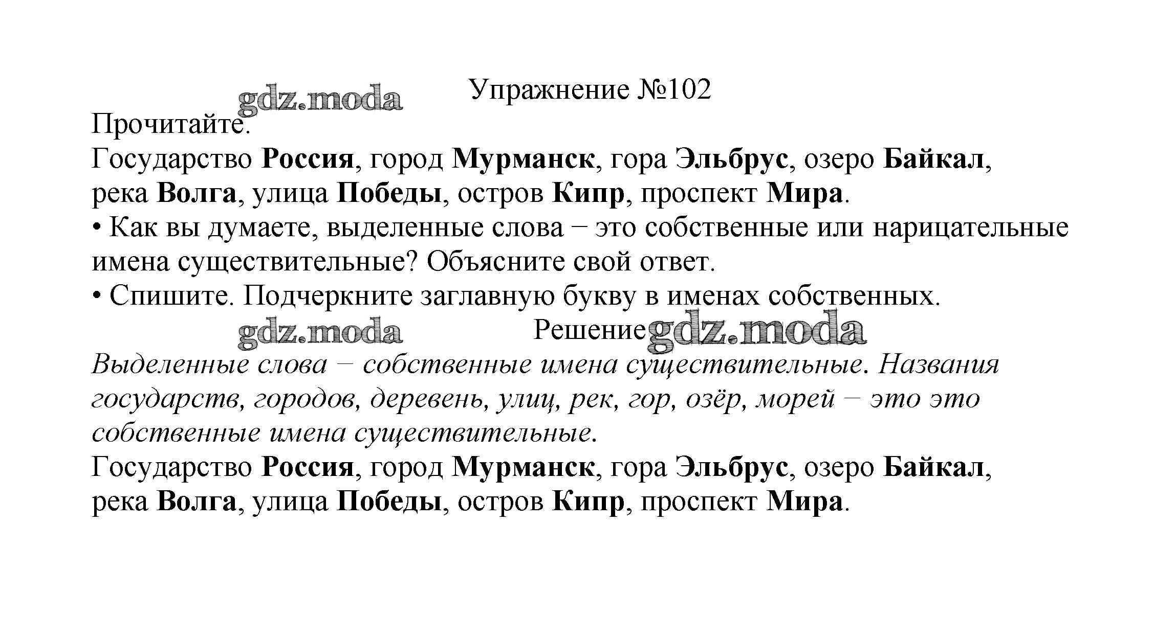 ОТВЕТ на задание № 102 Учебник по Русскому языку 2 класс Канакина Школа России