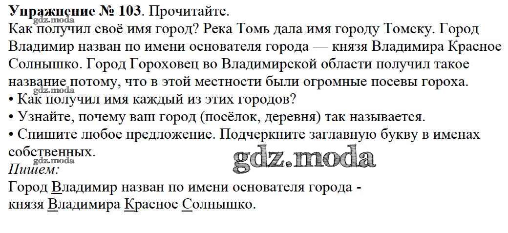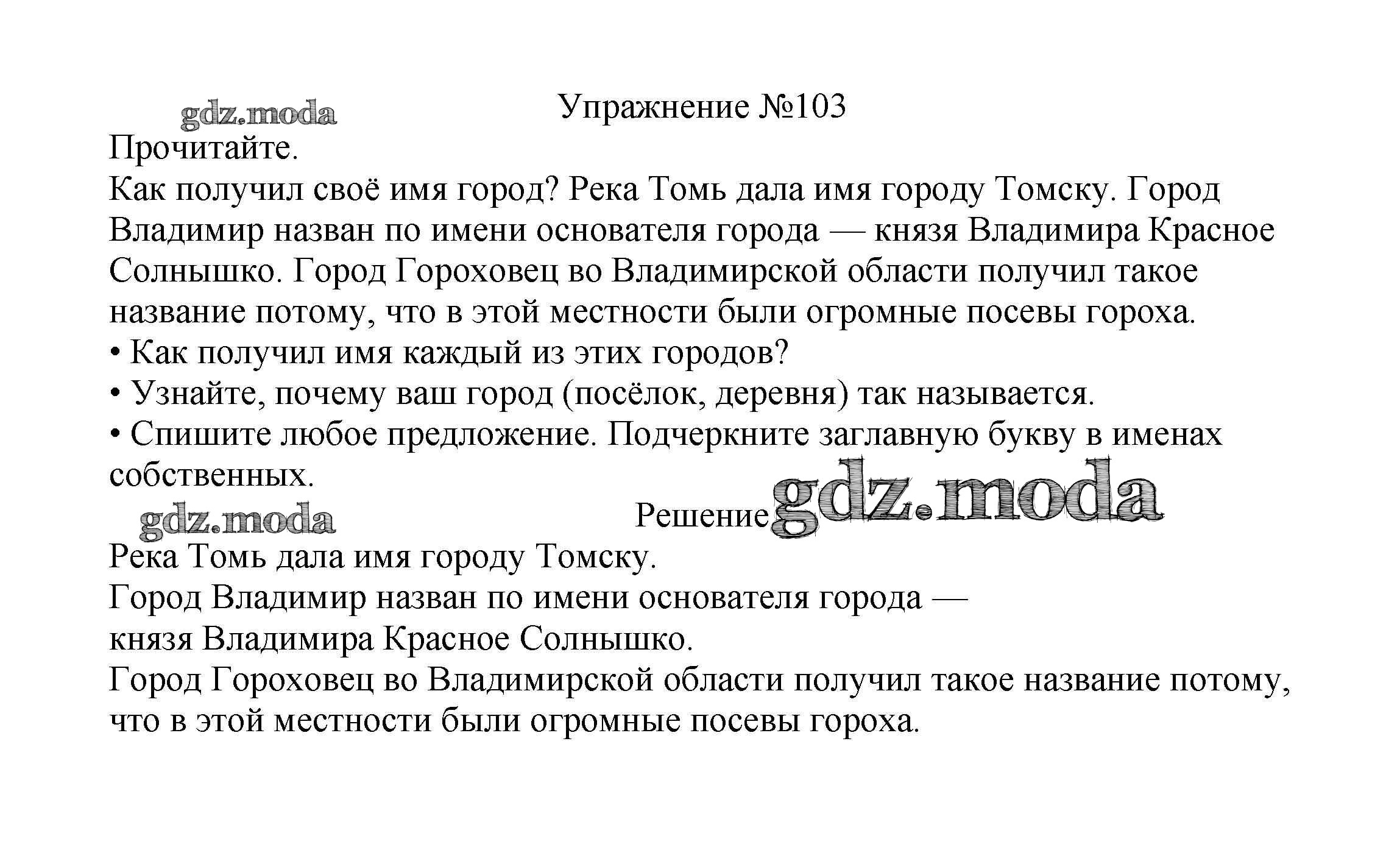 ОТВЕТ на задание № 103 Учебник по Русскому языку 2 класс Канакина Школа России