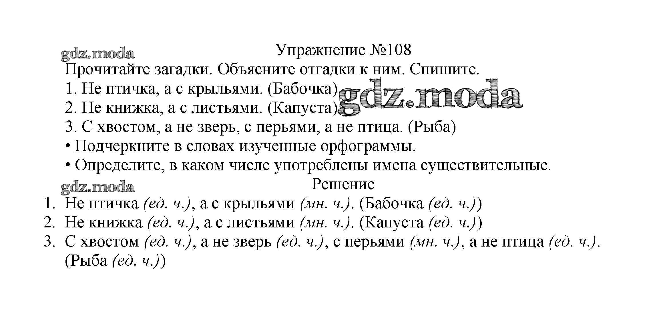 ОТВЕТ на задание № 108 Учебник по Русскому языку 2 класс Канакина Школа России