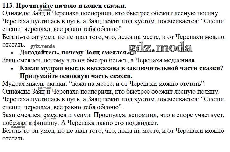 ОТВЕТ на задание № 113 Учебник по Русскому языку 2 класс Канакина Школа России