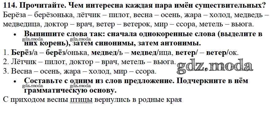 ОТВЕТ на задание № 114 Учебник по Русскому языку 2 класс Канакина Школа России