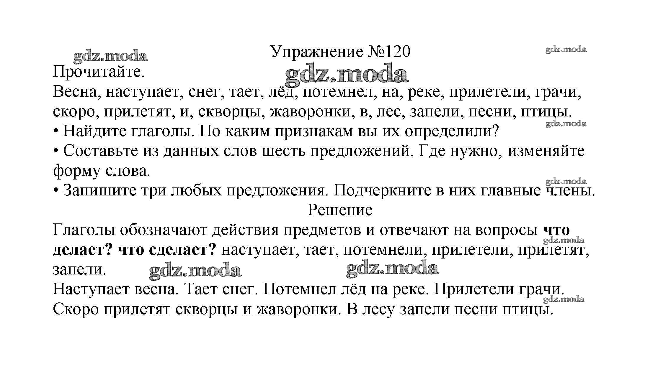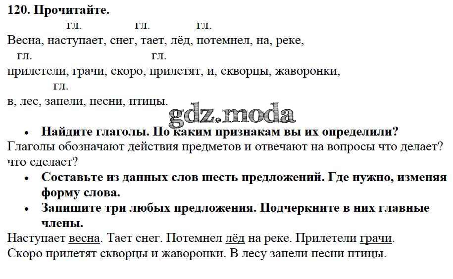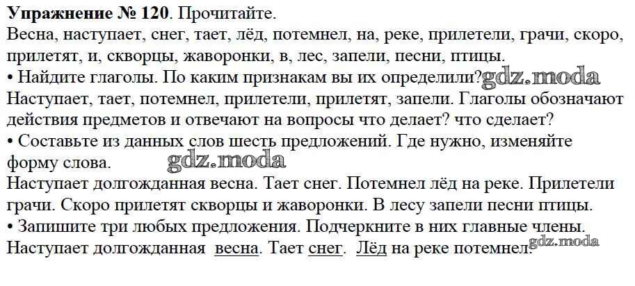 ОТВЕТ на задание № 120 Учебник по Русскому языку 2 класс Канакина Школа России