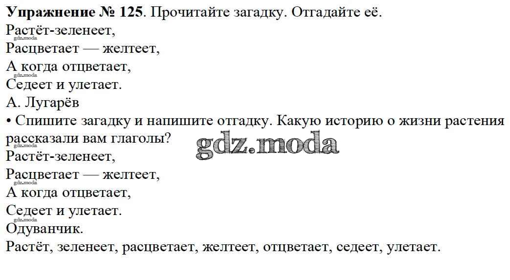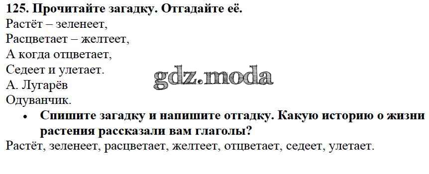 ОТВЕТ на задание № 125 Учебник по Русскому языку 2 класс Канакина Школа России