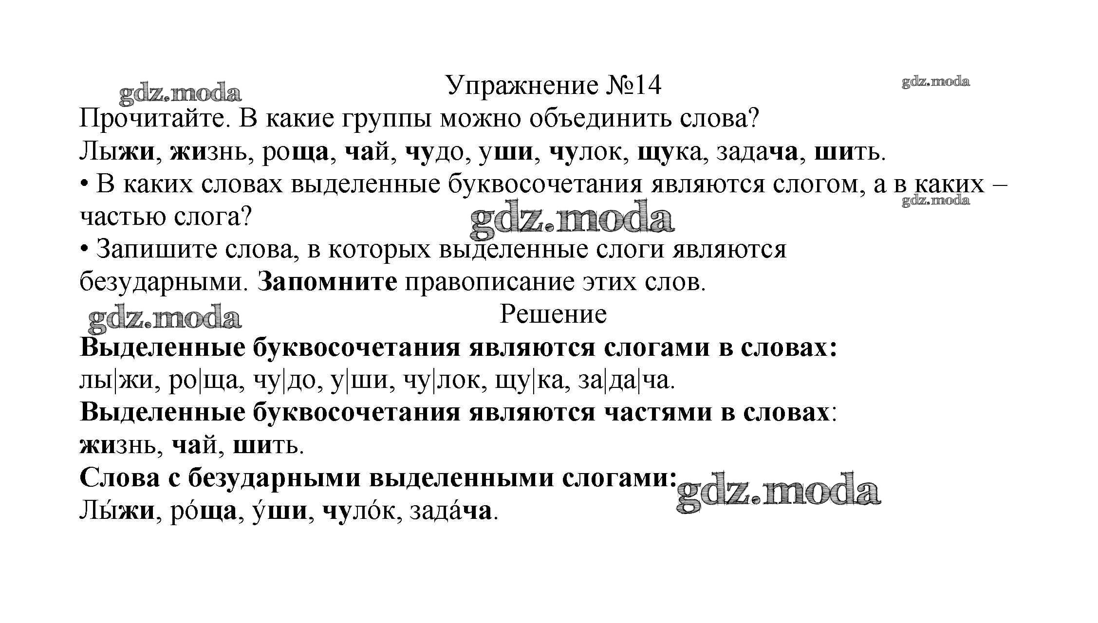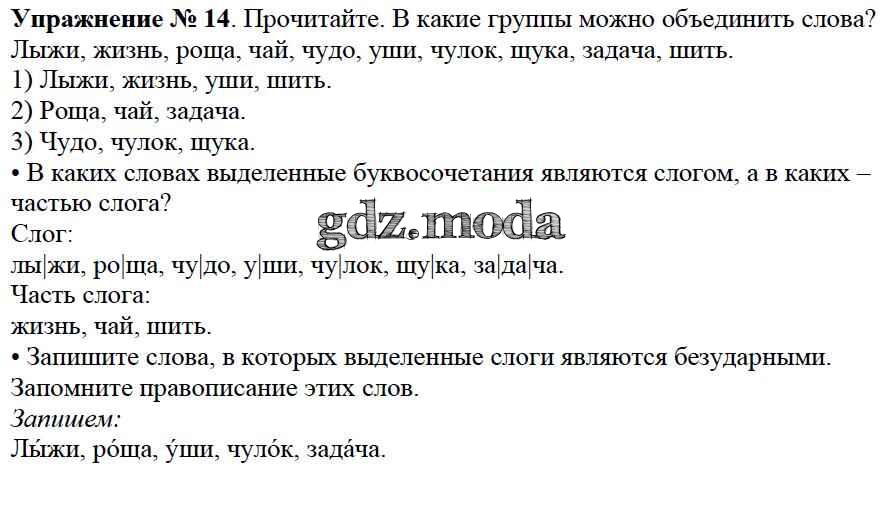 ОТВЕТ на задание № 14 Учебник по Русскому языку 2 класс Канакина Школа России