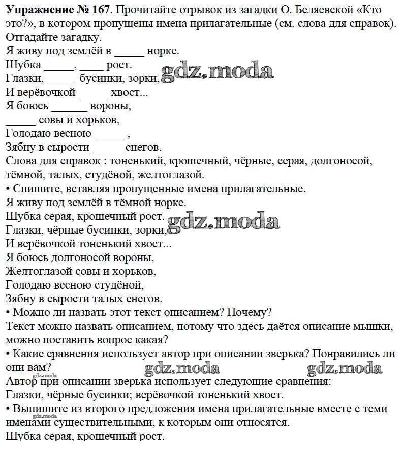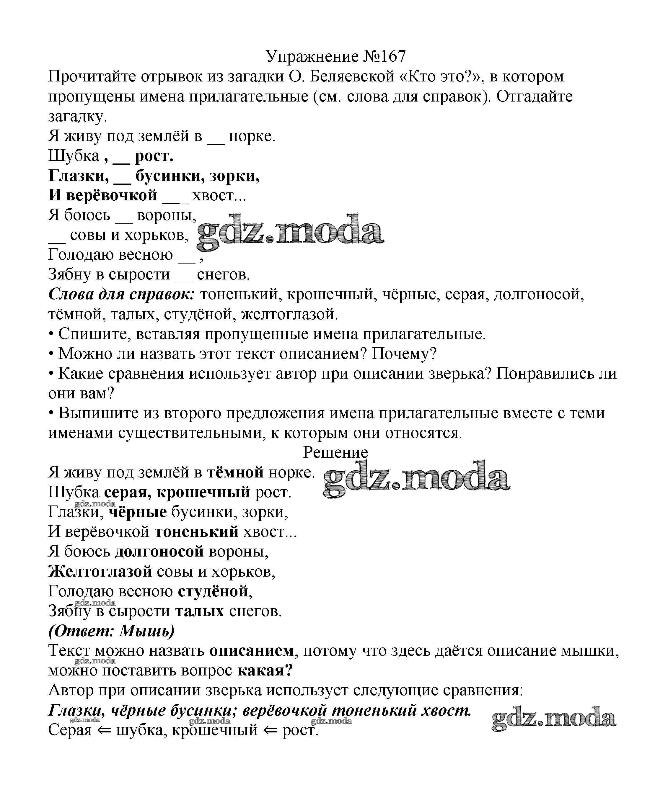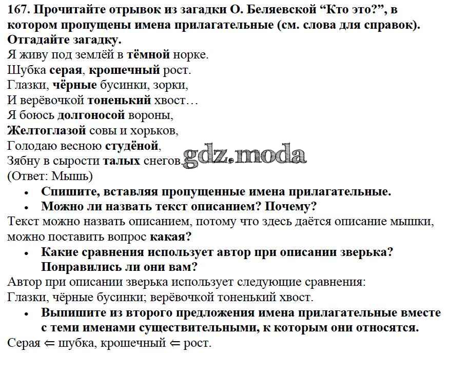 ОТВЕТ на задание № 167 Учебник по Русскому языку 2 класс Канакина Школа России
