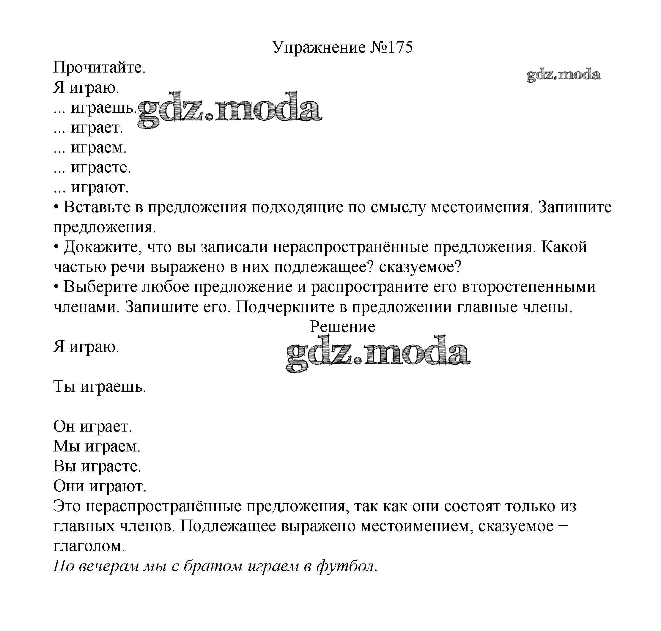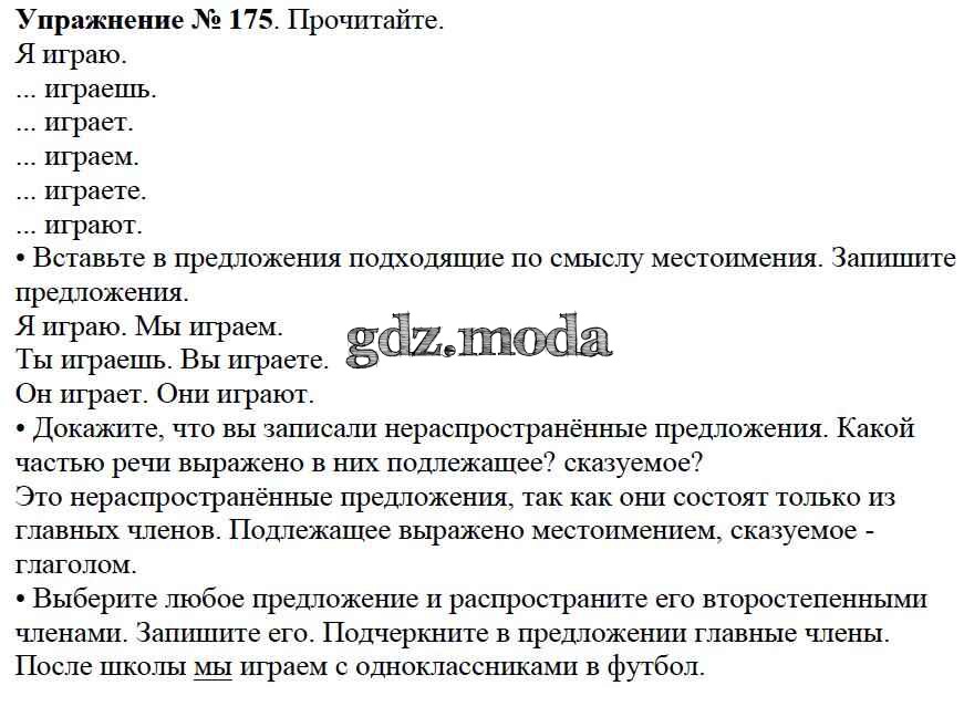 ОТВЕТ на задание № 175 Учебник по Русскому языку 2 класс Канакина Школа России