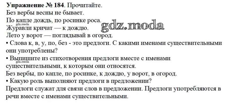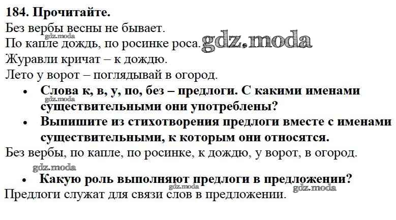 ОТВЕТ на задание № 184 Учебник по Русскому языку 2 класс Канакина Школа России