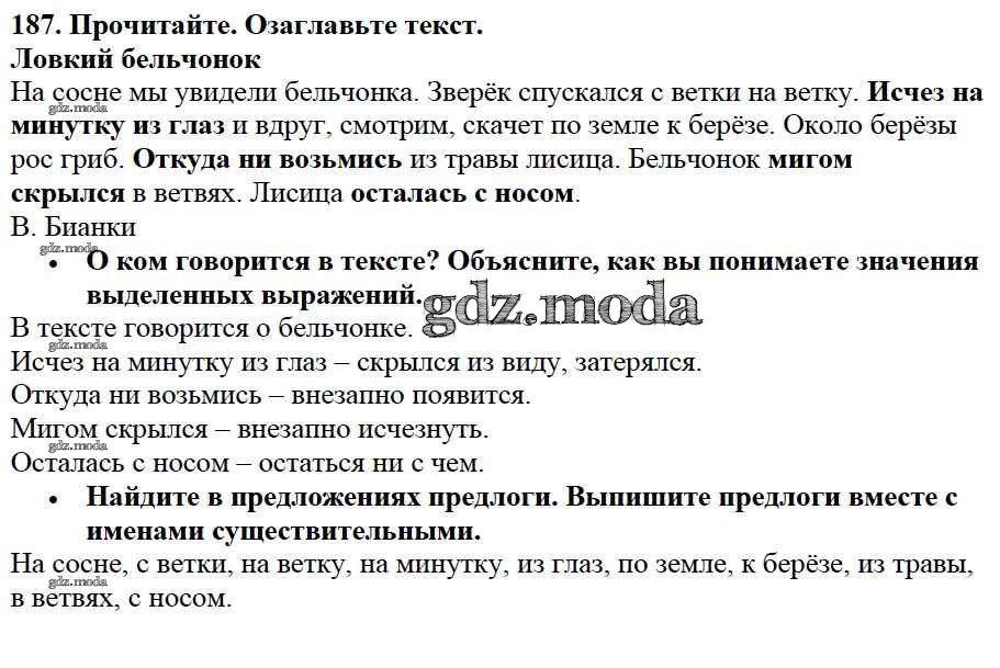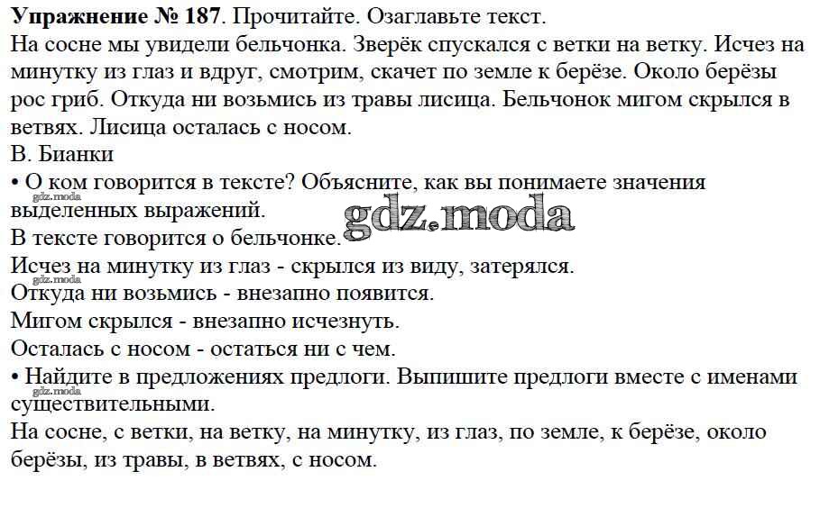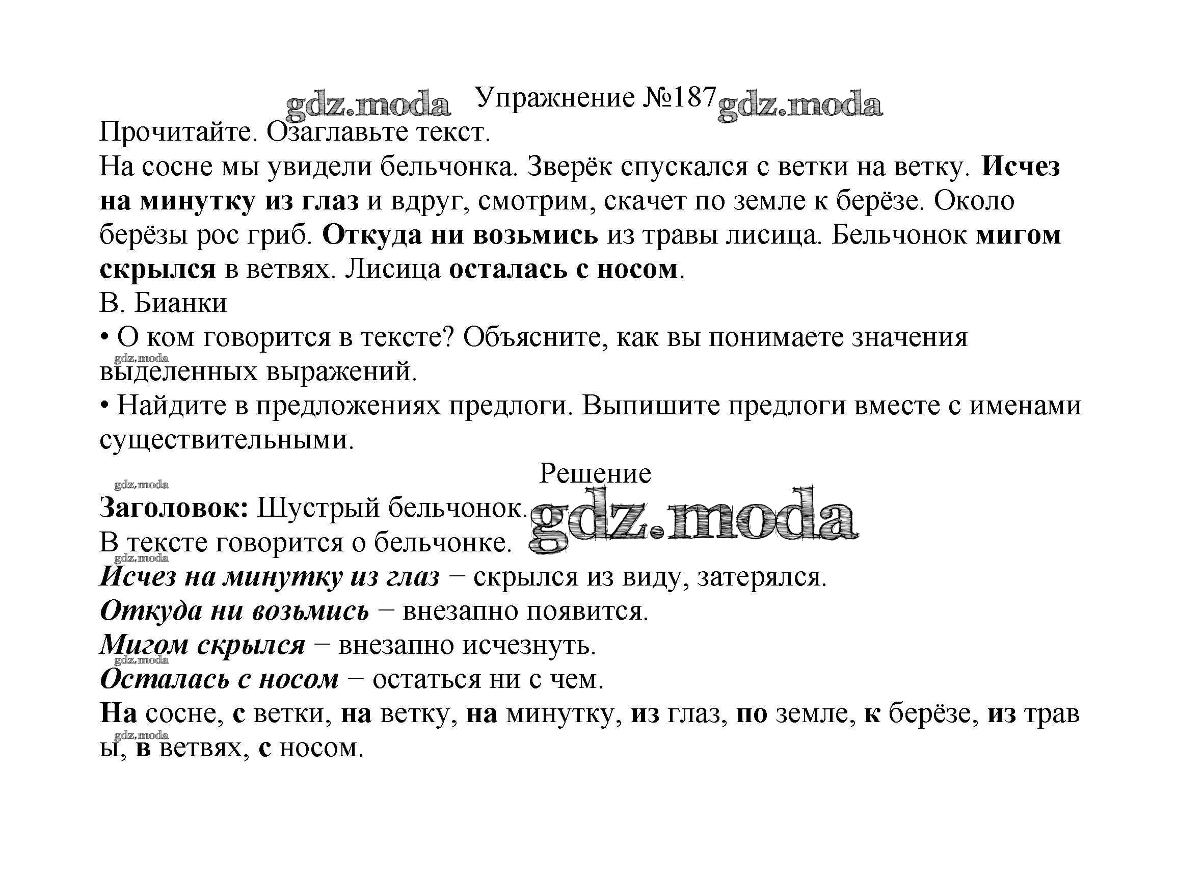 ОТВЕТ на задание № 187 Учебник по Русскому языку 2 класс Канакина Школа России