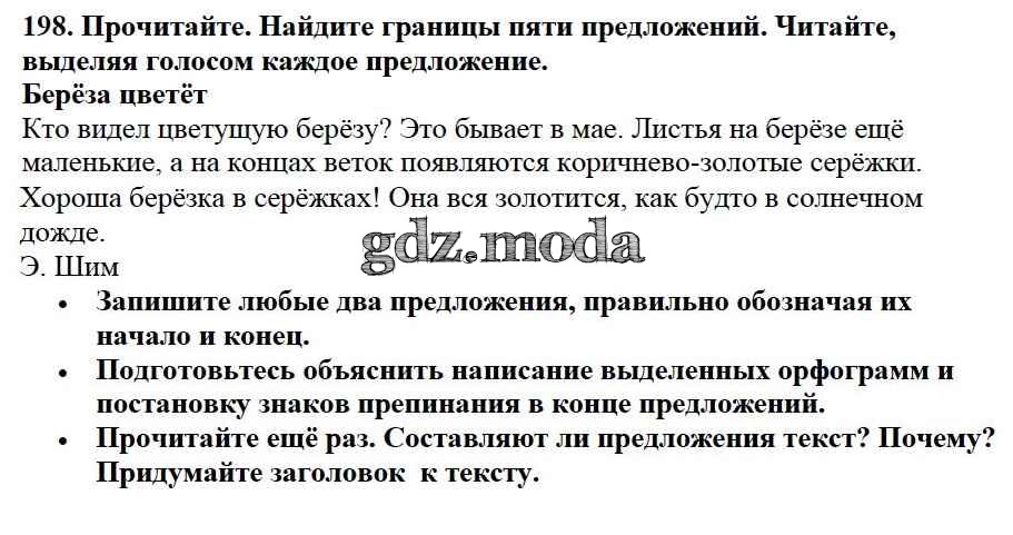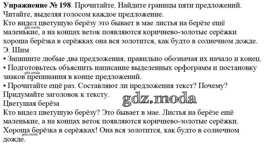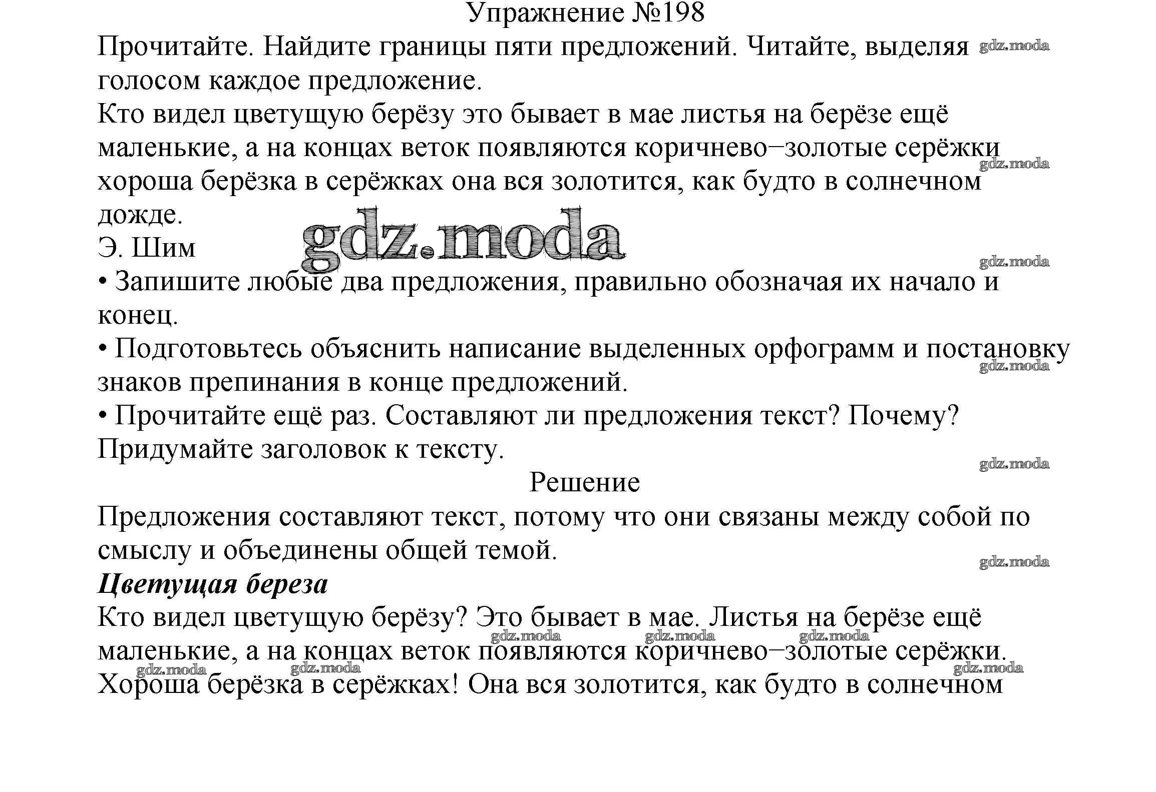 ОТВЕТ на задание № 198 Учебник по Русскому языку 2 класс Канакина Школа России