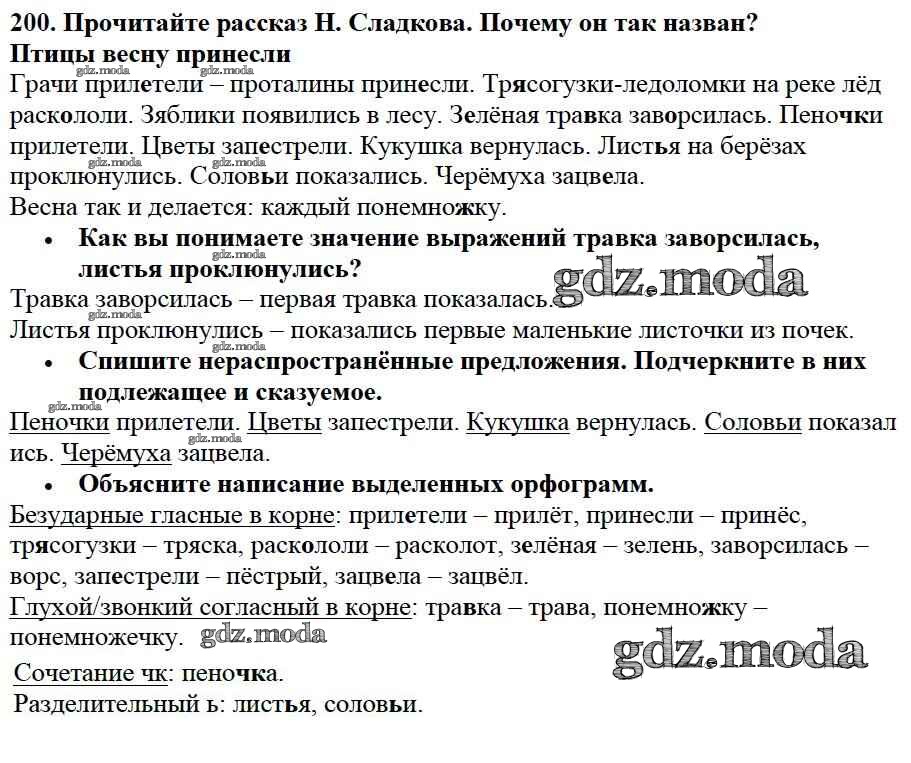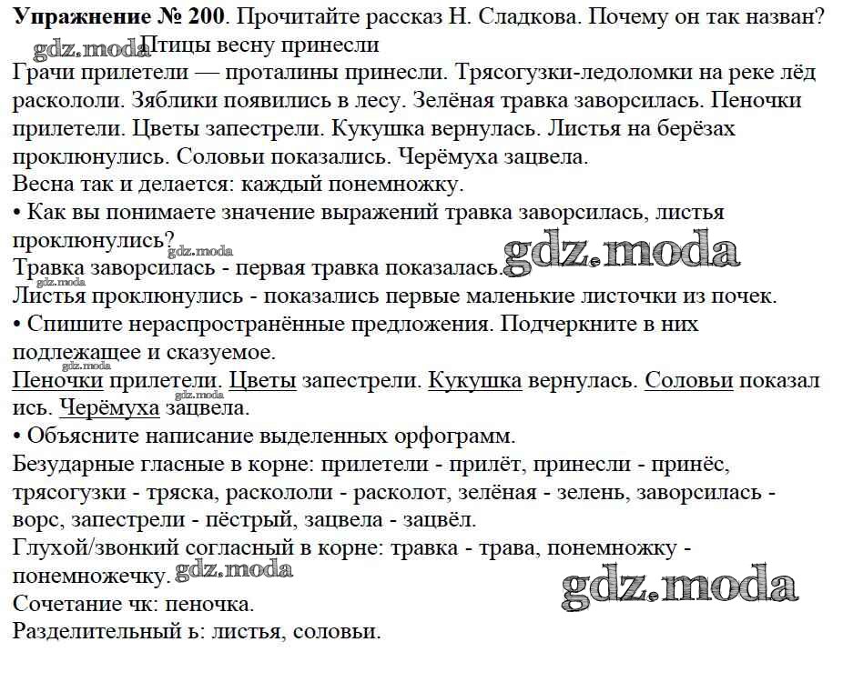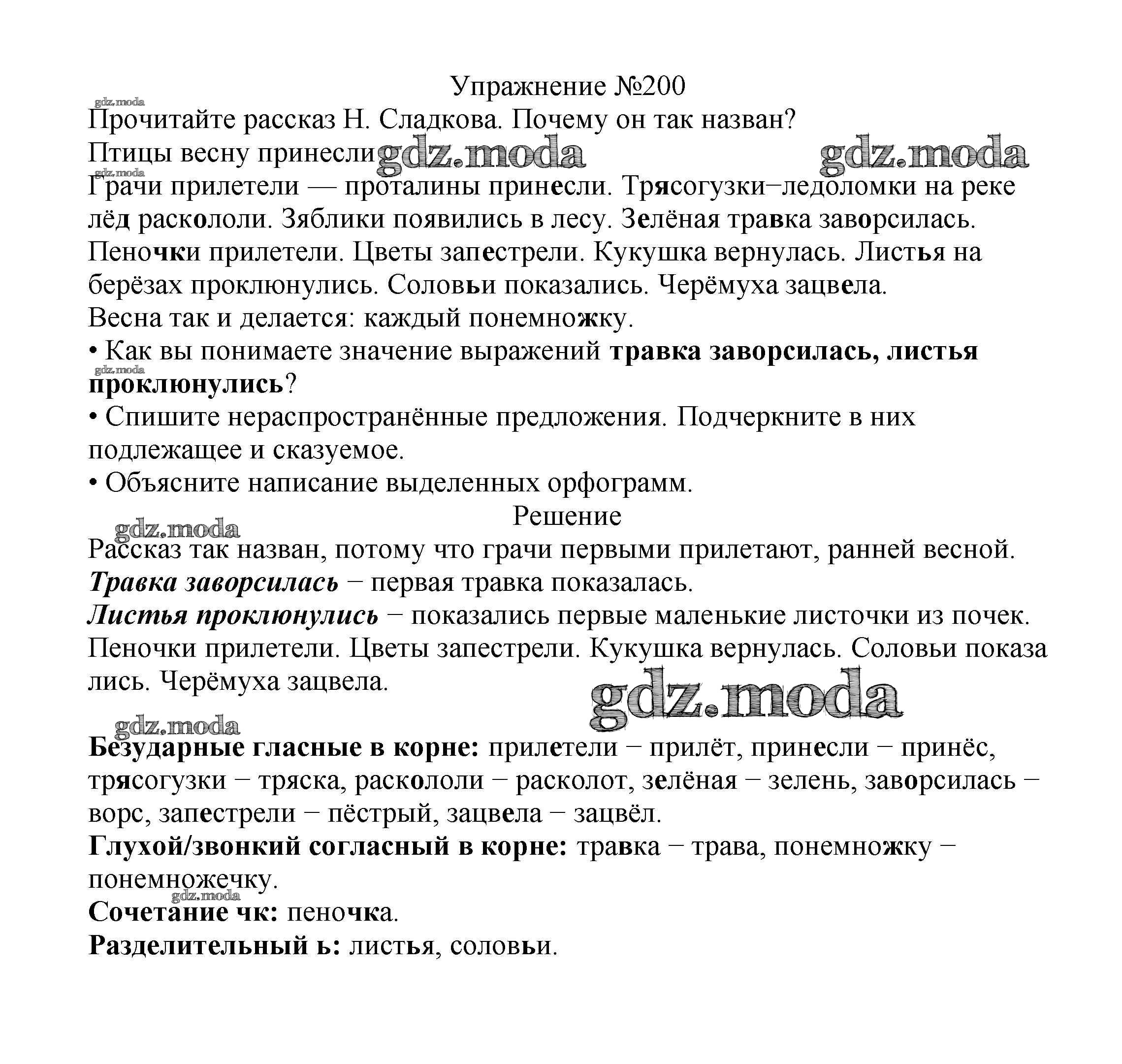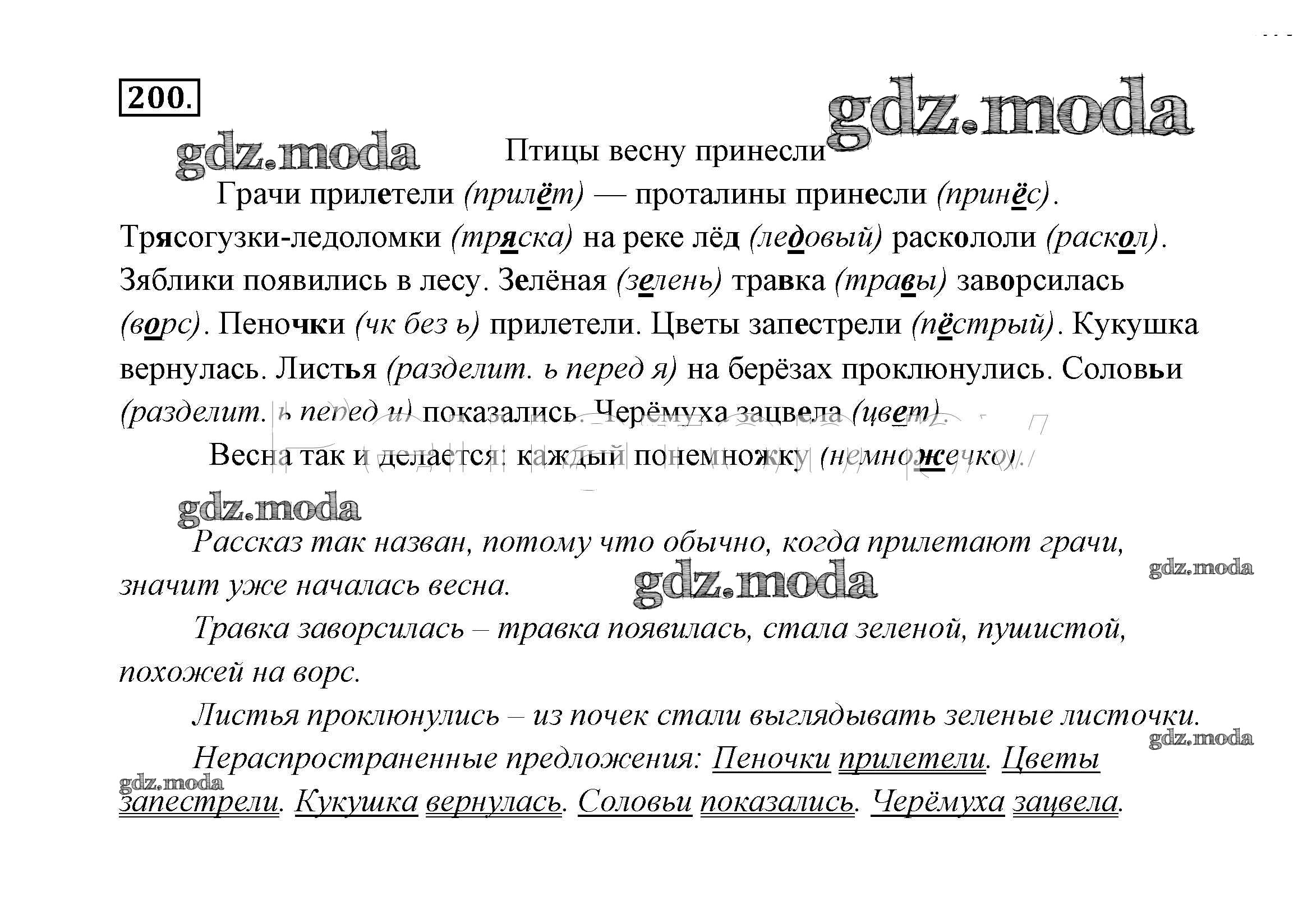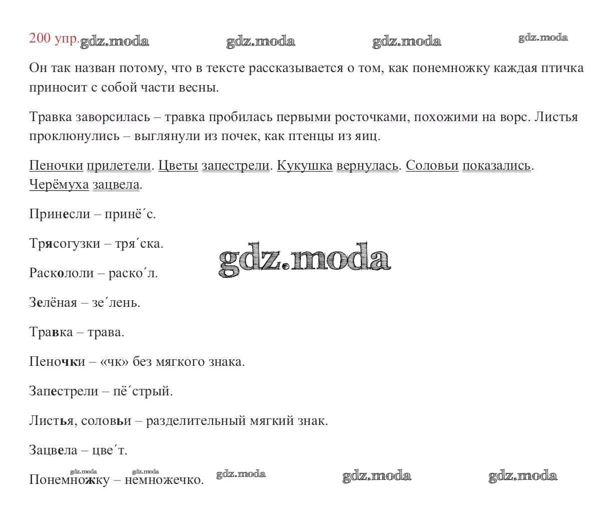 ОТВЕТ на задание № 200 Учебник по Русскому языку 2 класс Канакина Школа России