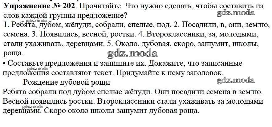 ОТВЕТ на задание № 202 Учебник по Русскому языку 2 класс Канакина Школа России