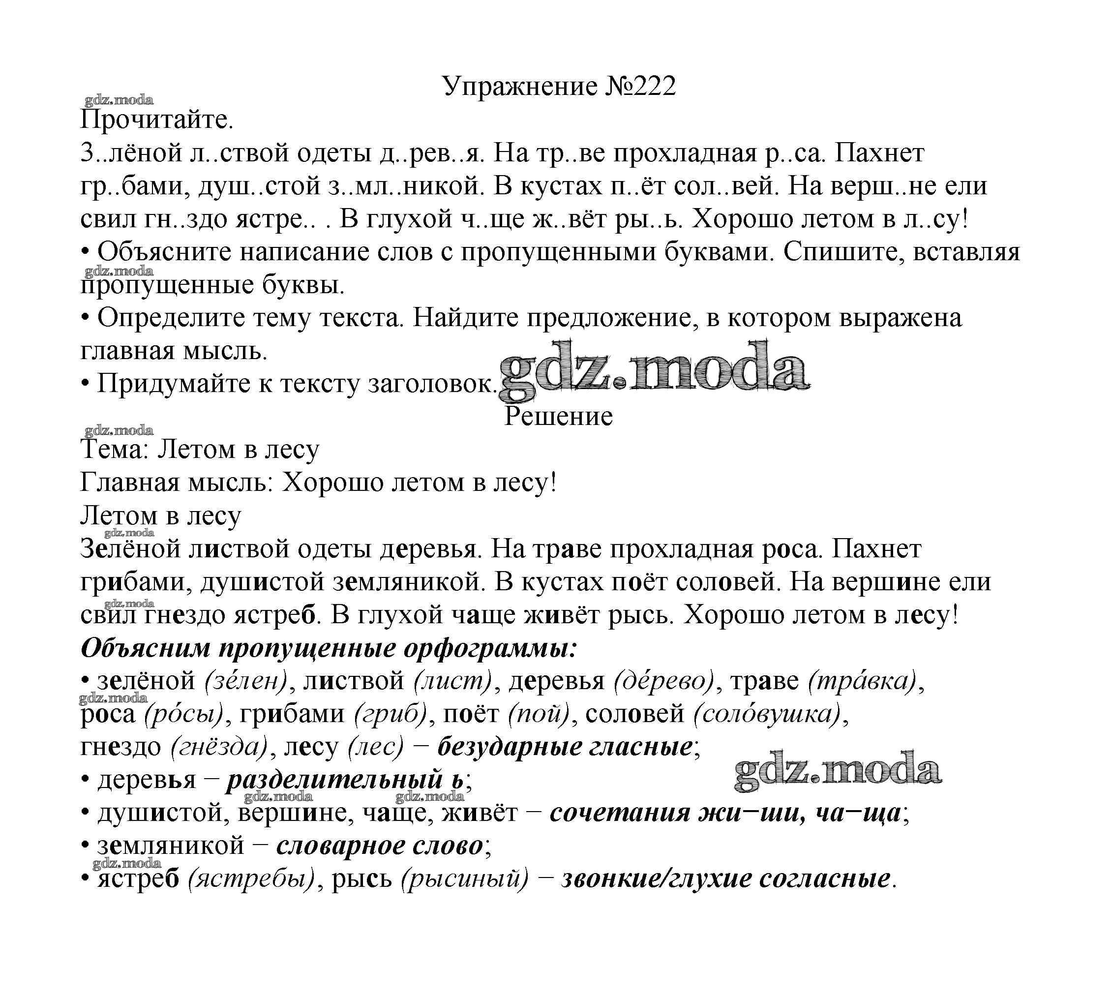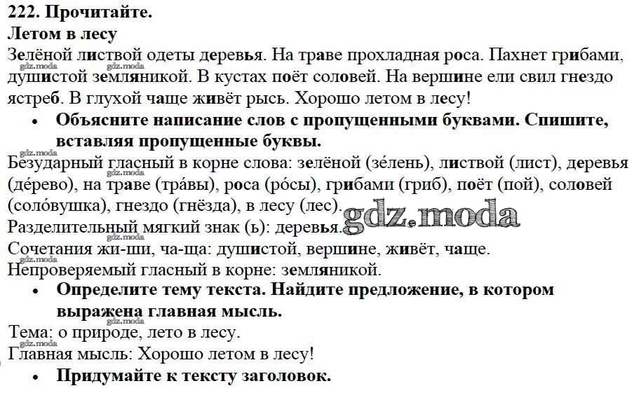 ОТВЕТ на задание № 222 Учебник по Русскому языку 2 класс Канакина Школа России