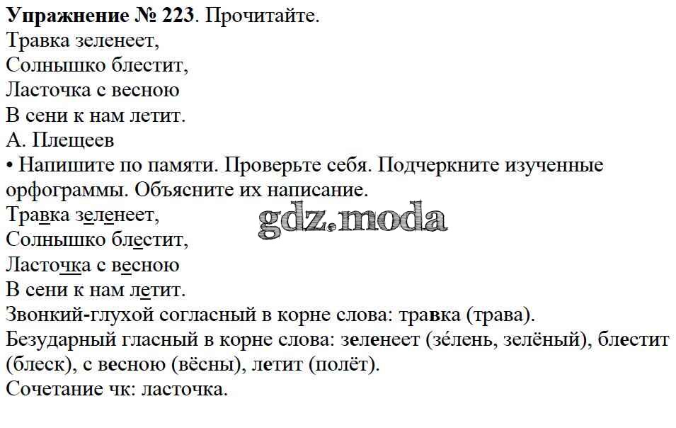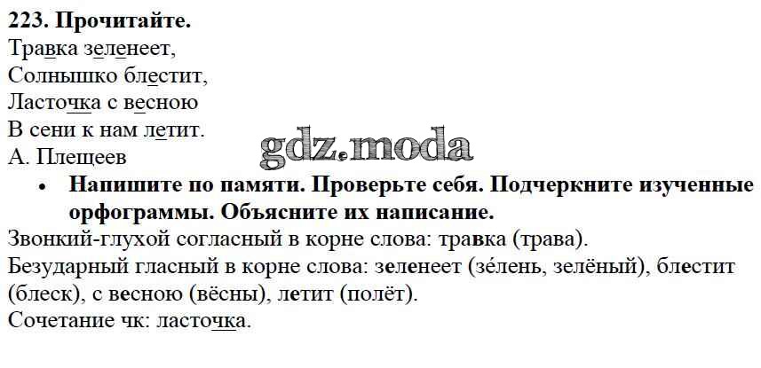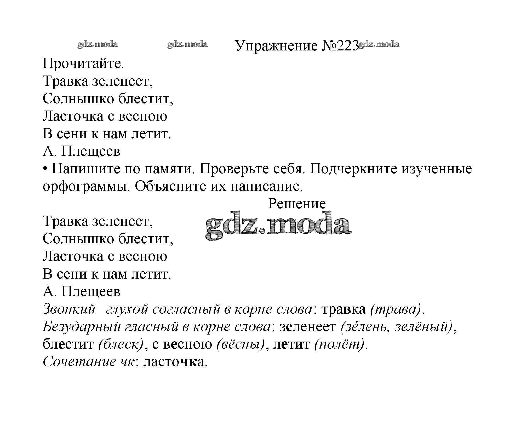 ОТВЕТ на задание № 223 Учебник по Русскому языку 2 класс Канакина Школа России