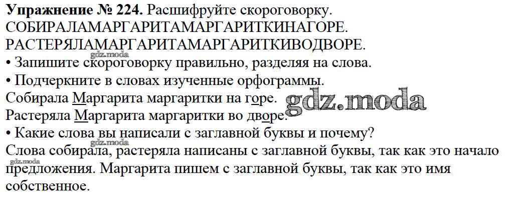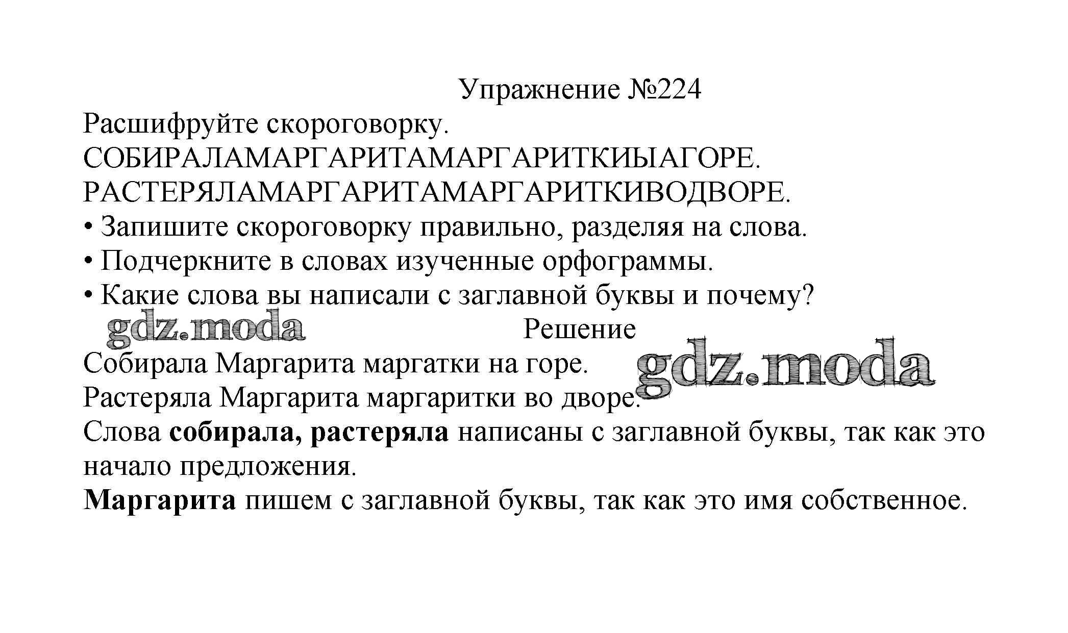 ОТВЕТ на задание № 224 Учебник по Русскому языку 2 класс Канакина Школа России
