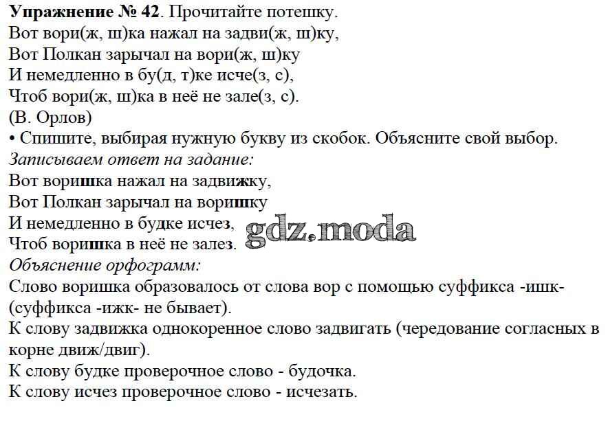 ОТВЕТ на задание № 42 Учебник по Русскому языку 2 класс Канакина Школа России