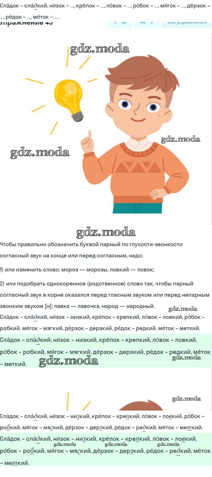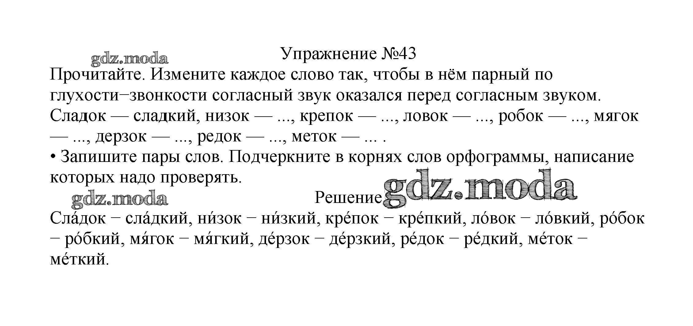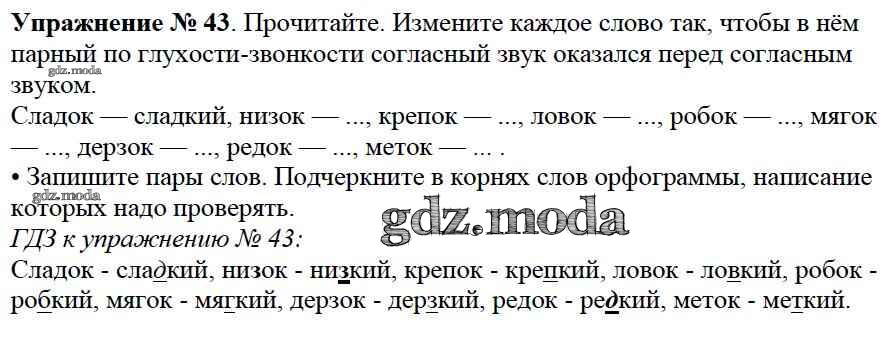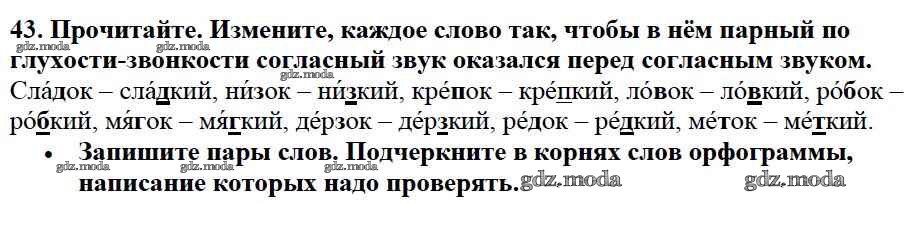 ОТВЕТ на задание № 43 Учебник по Русскому языку 2 класс Канакина Школа России