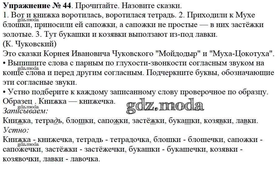 ОТВЕТ на задание № 44 Учебник по Русскому языку 2 класс Канакина Школа России
