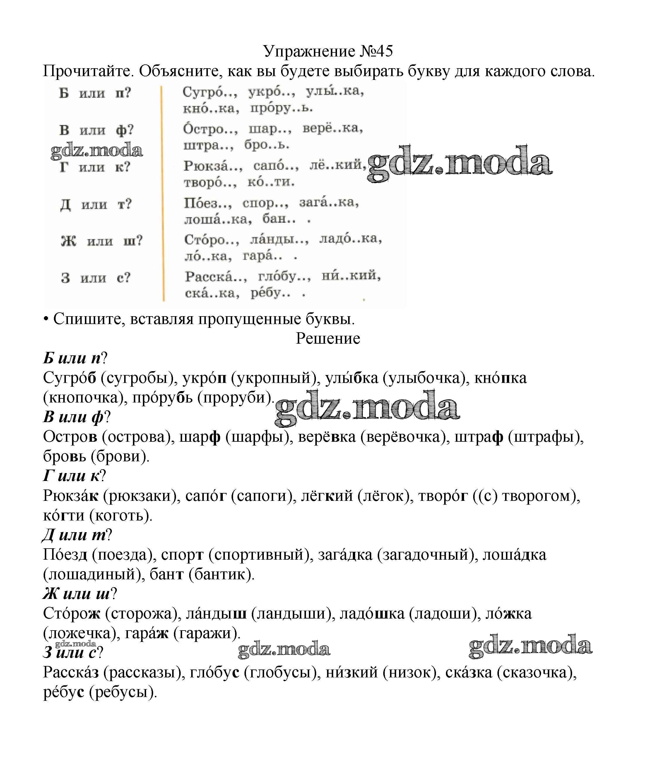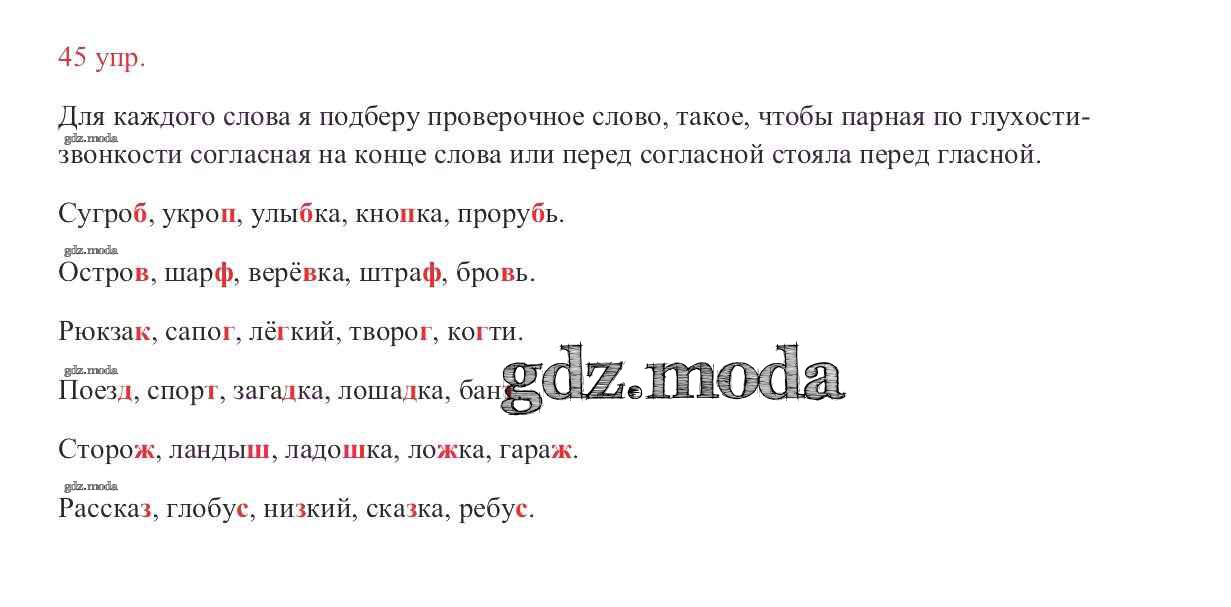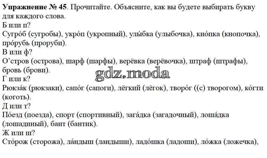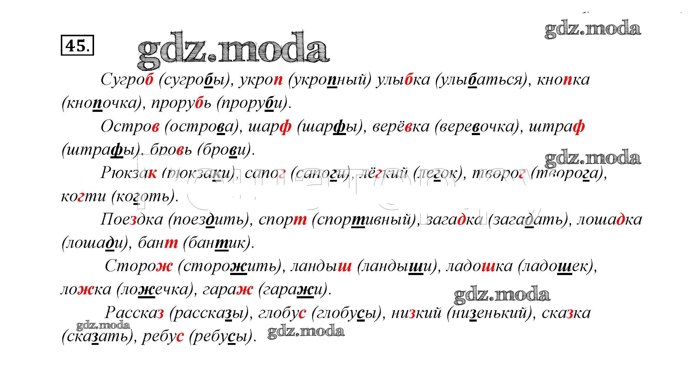 ОТВЕТ на задание № 45 Учебник по Русскому языку 2 класс Канакина Школа России