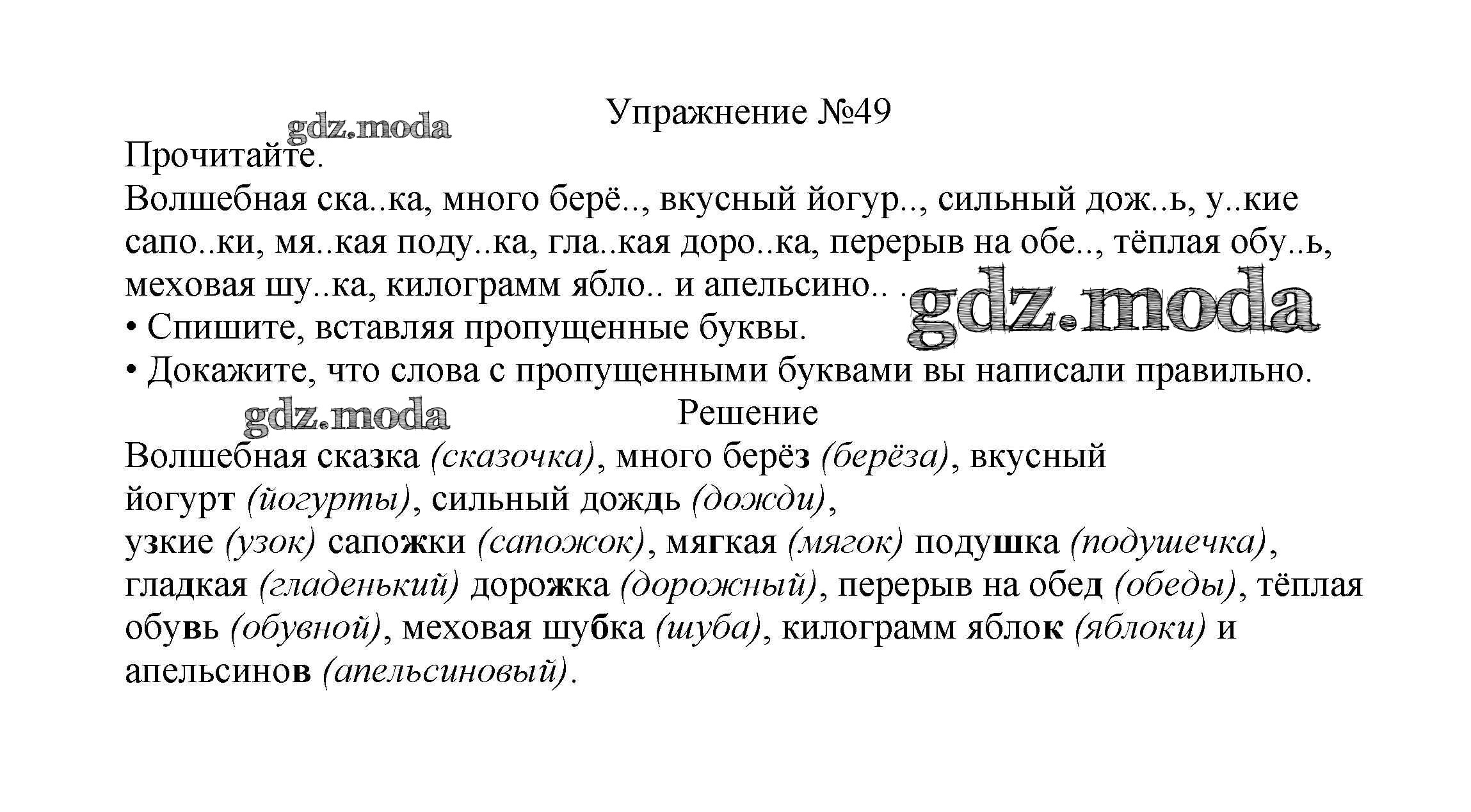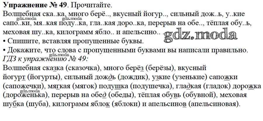 ОТВЕТ на задание № 49 Учебник по Русскому языку 2 класс Канакина Школа России