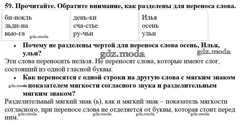 ОТВЕТ на задание № 59 Учебник по Русскому языку 2 класс Канакина Школа России