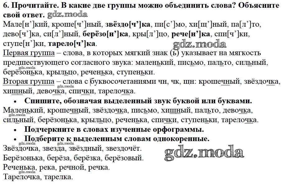 ОТВЕТ на задание № 6 Учебник по Русскому языку 2 класс Канакина Школа России