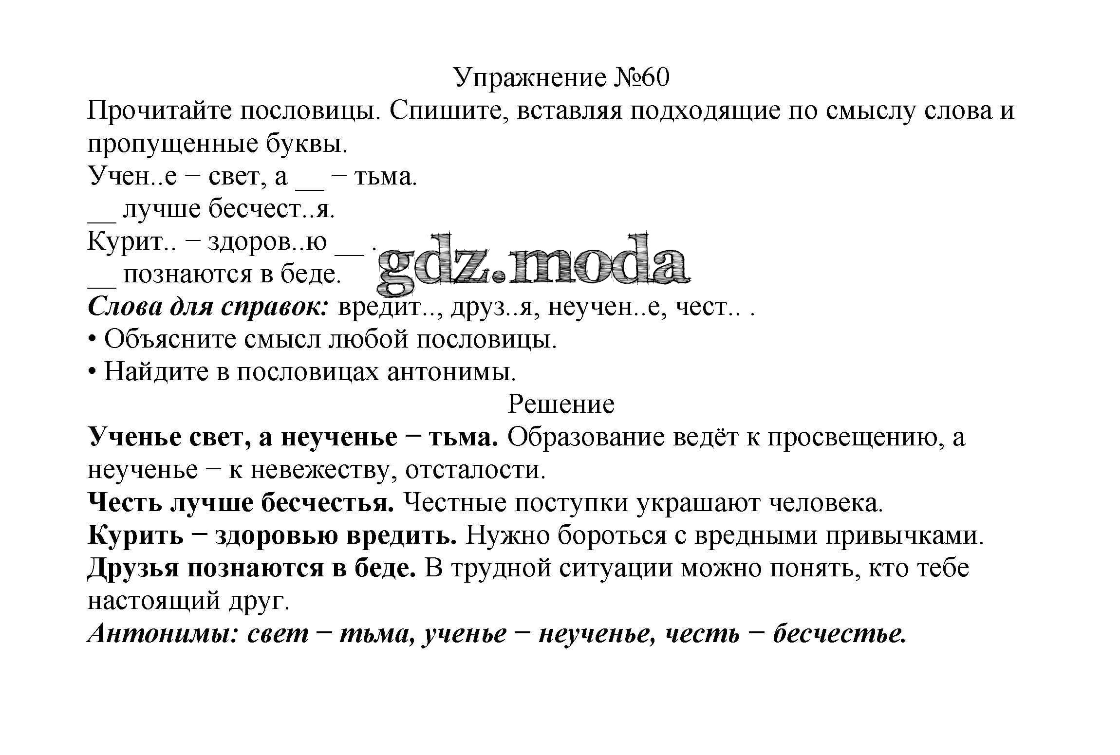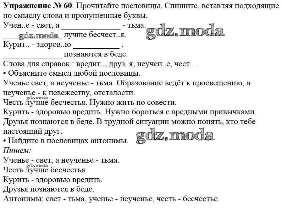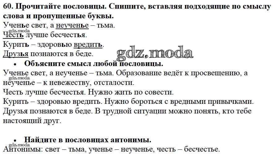 ОТВЕТ на задание № 60 Учебник по Русскому языку 2 класс Канакина Школа России