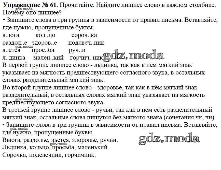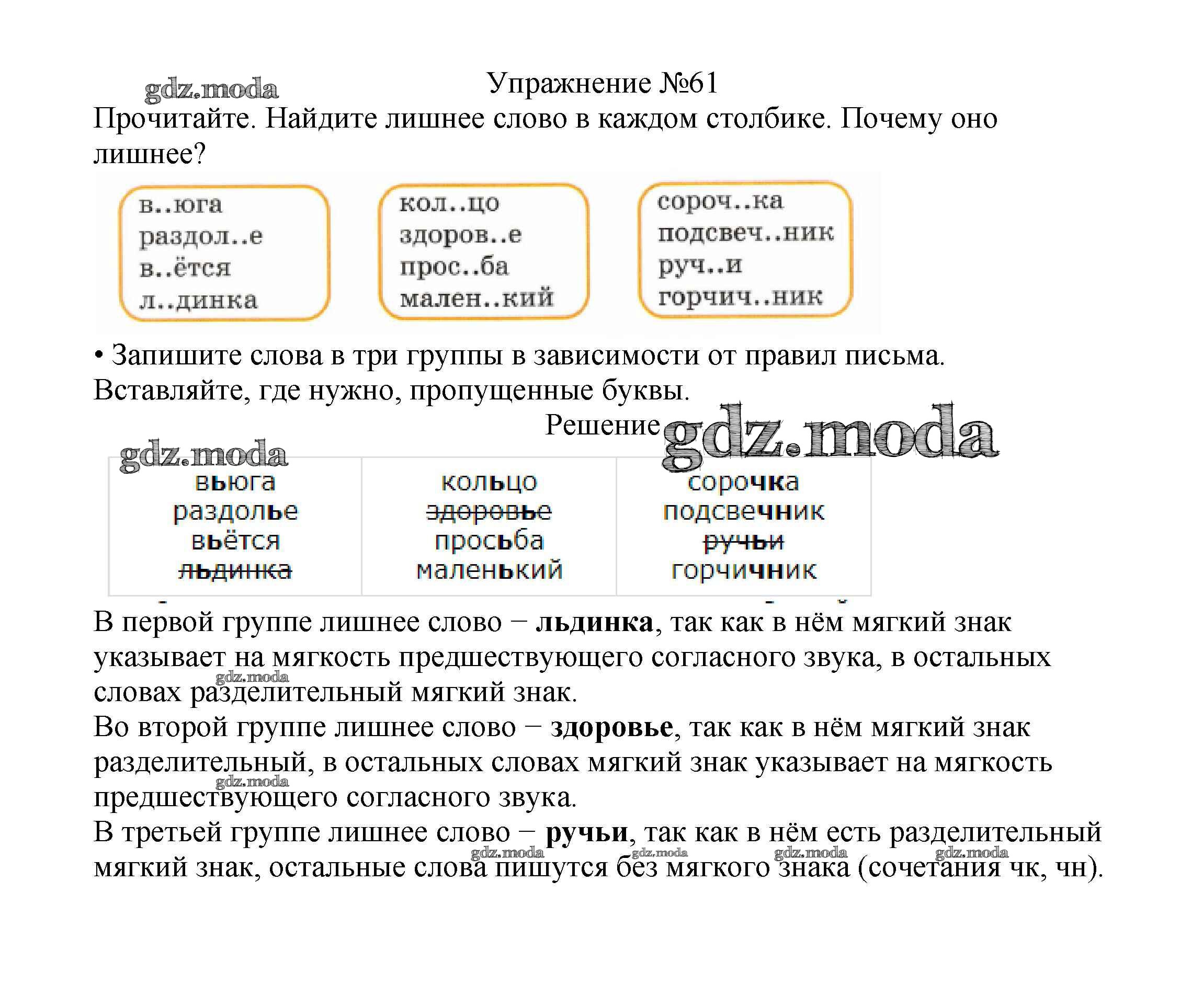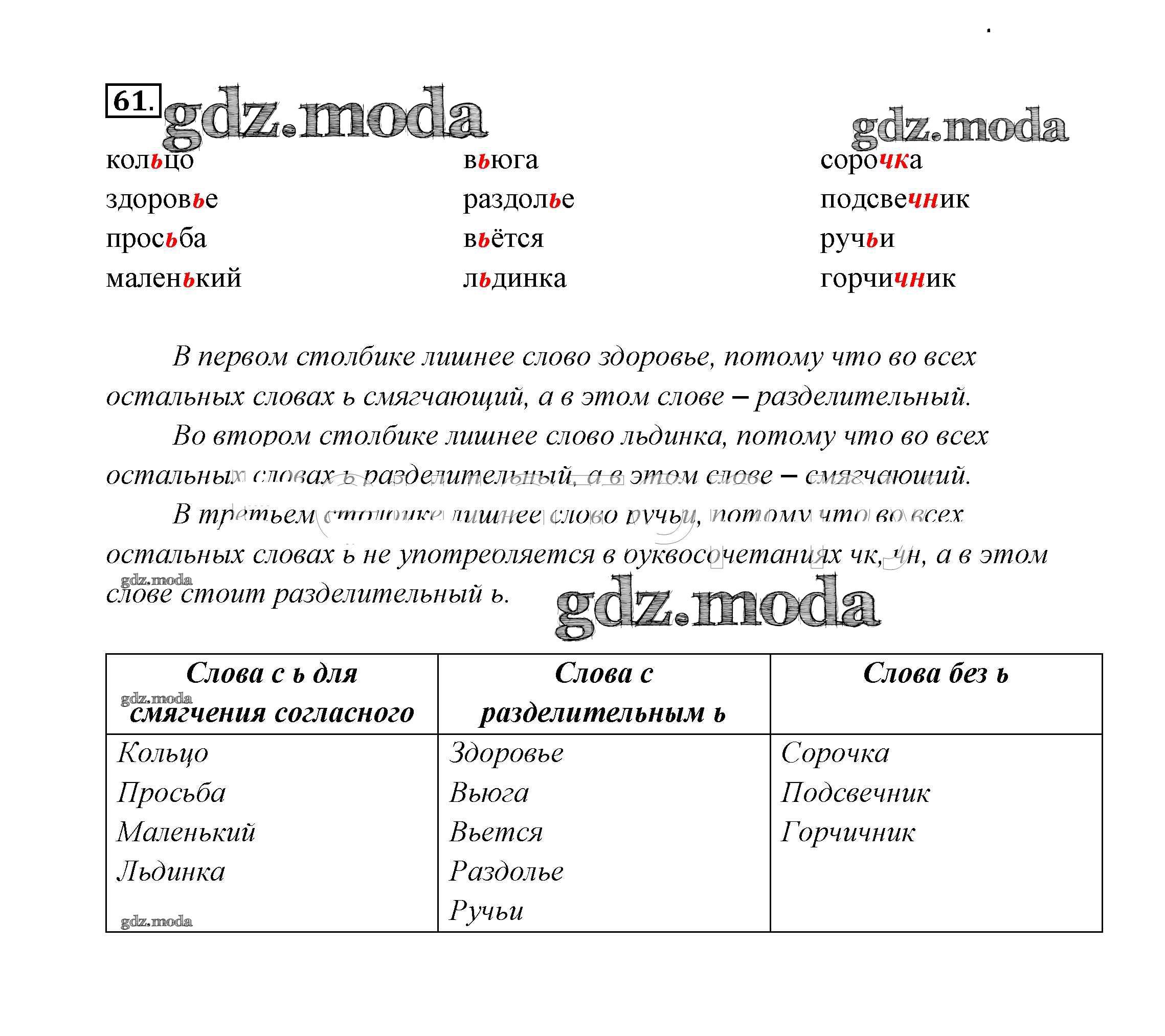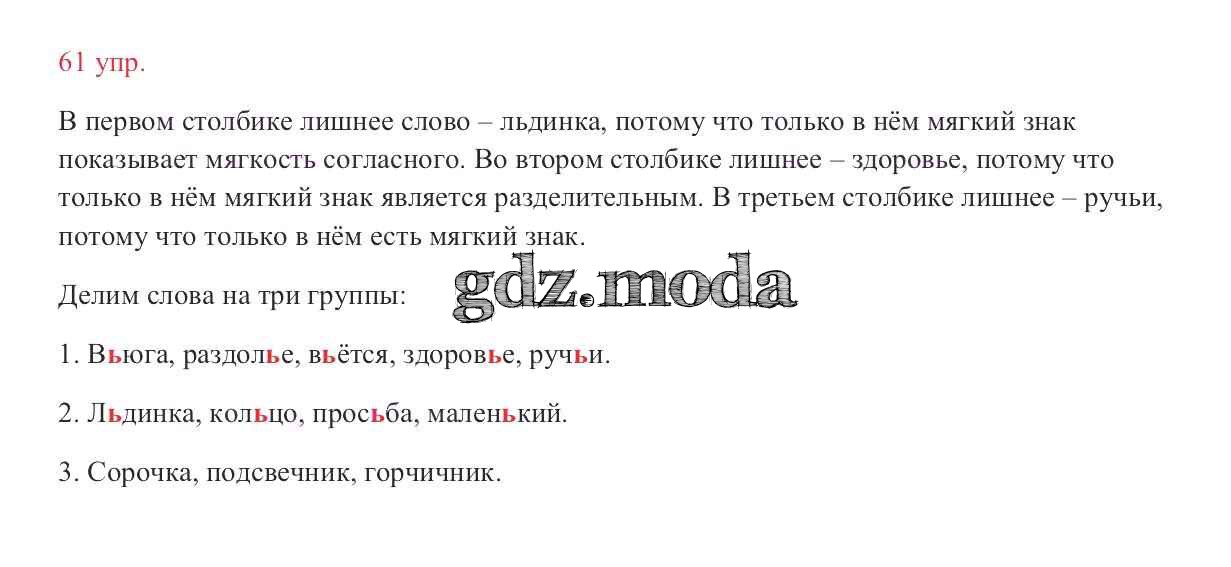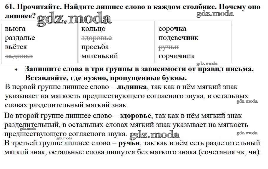 ОТВЕТ на задание № 61 Учебник по Русскому языку 2 класс Канакина Школа России