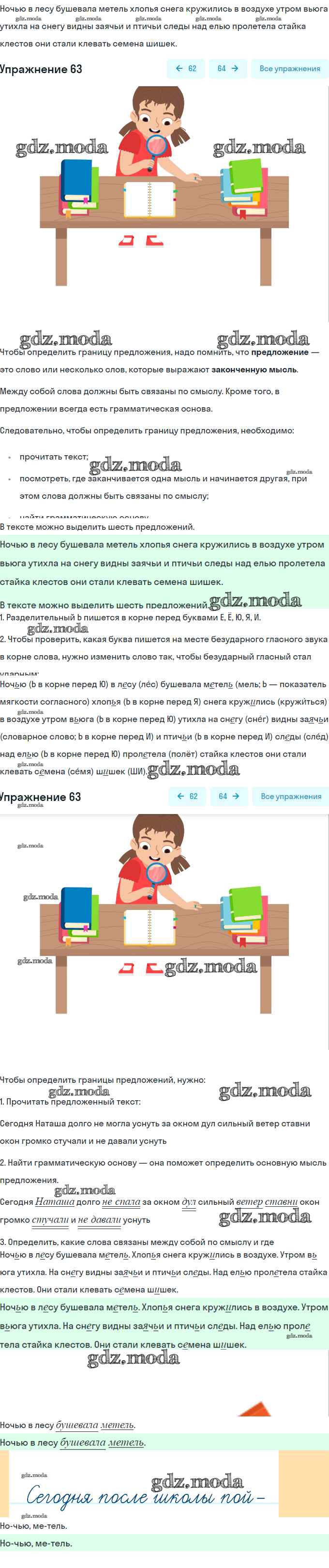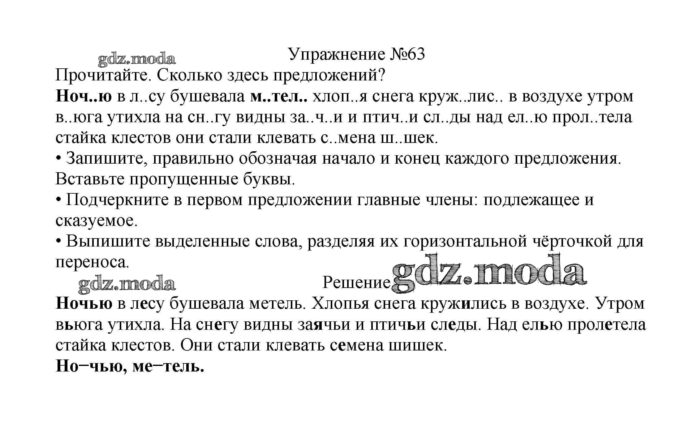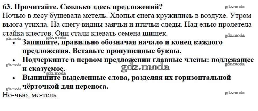 ОТВЕТ на задание № 63 Учебник по Русскому языку 2 класс Канакина Школа России