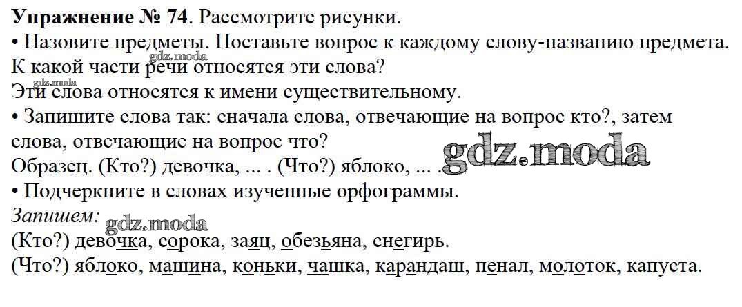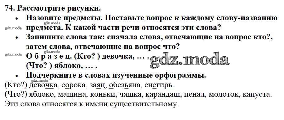 ОТВЕТ на задание № 74 Учебник по Русскому языку 2 класс Канакина Школа России