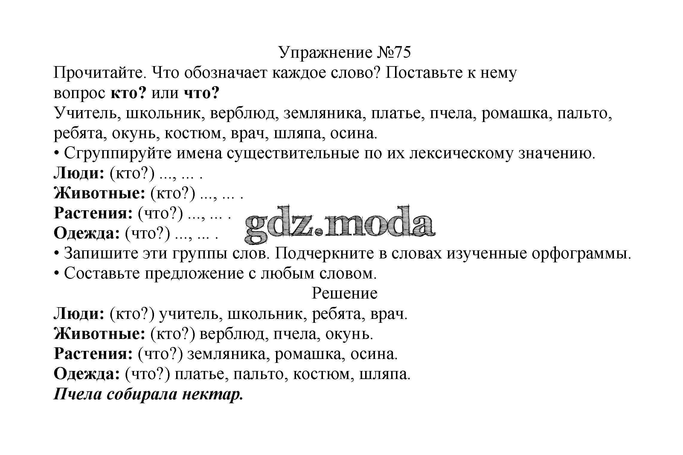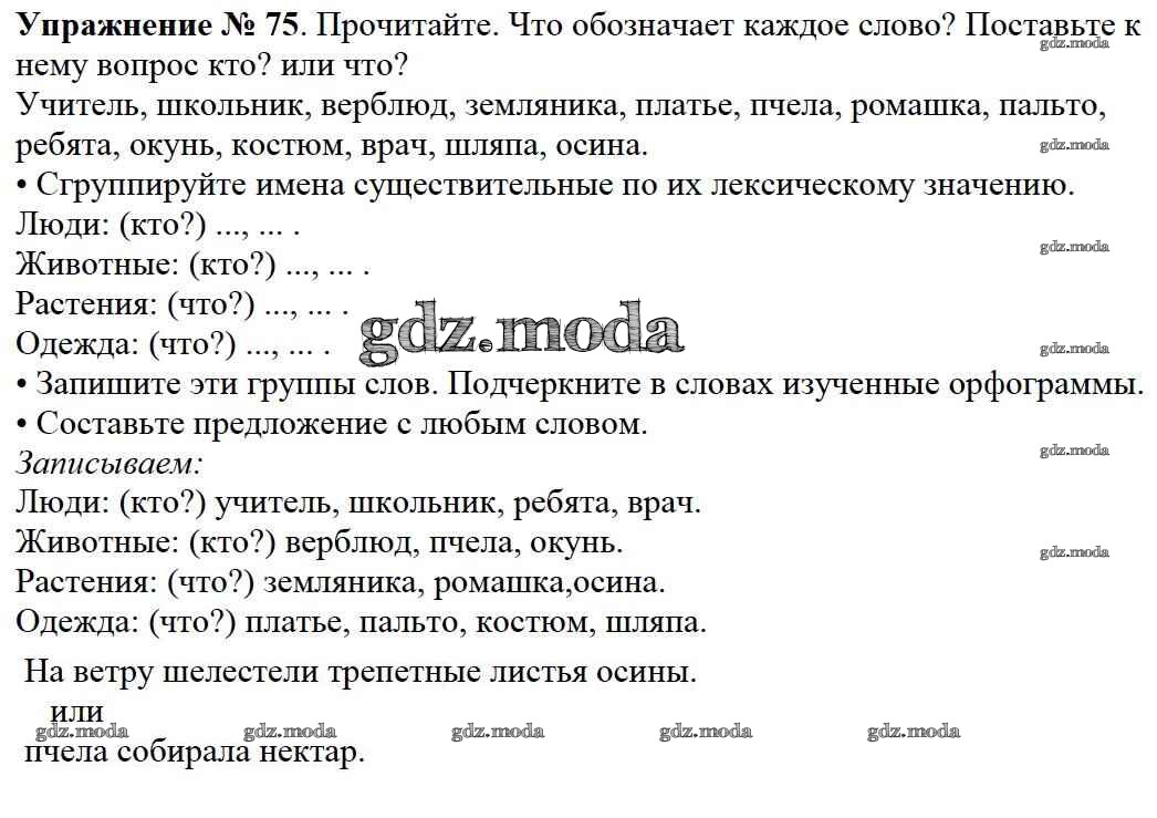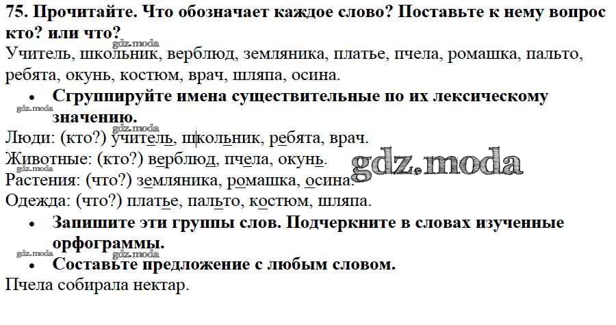ОТВЕТ на задание № 75 Учебник по Русскому языку 2 класс Канакина Школа России