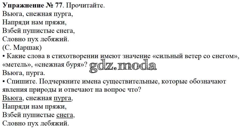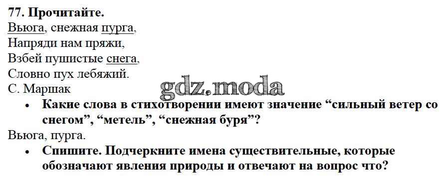 ОТВЕТ на задание № 77 Учебник по Русскому языку 2 класс Канакина Школа России