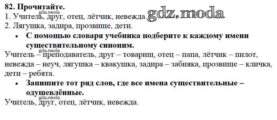 ОТВЕТ на задание № 82 Учебник по Русскому языку 2 класс Канакина Школа России