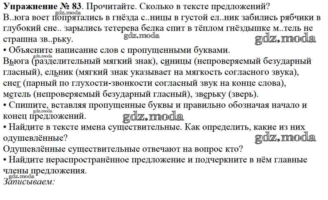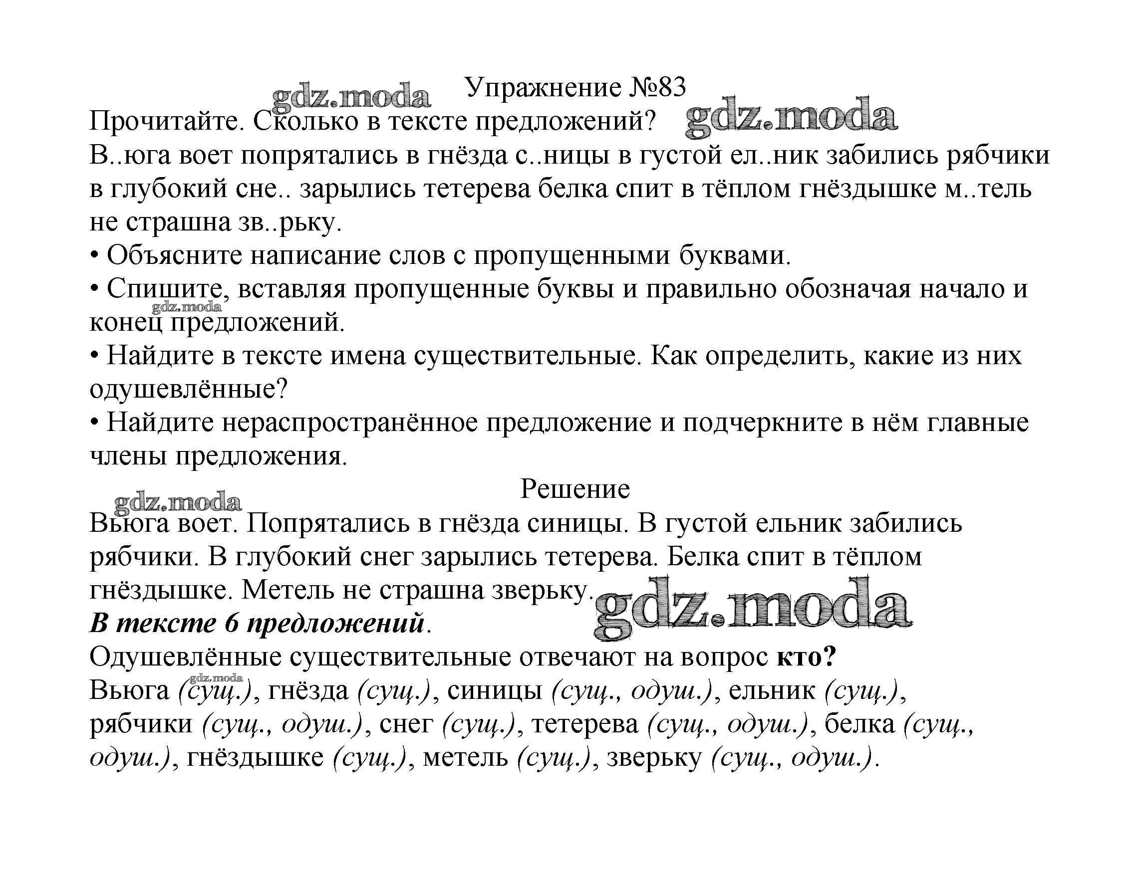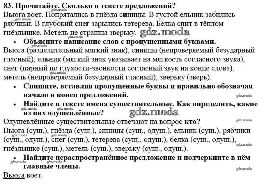 ОТВЕТ на задание № 83 Учебник по Русскому языку 2 класс Канакина Школа России