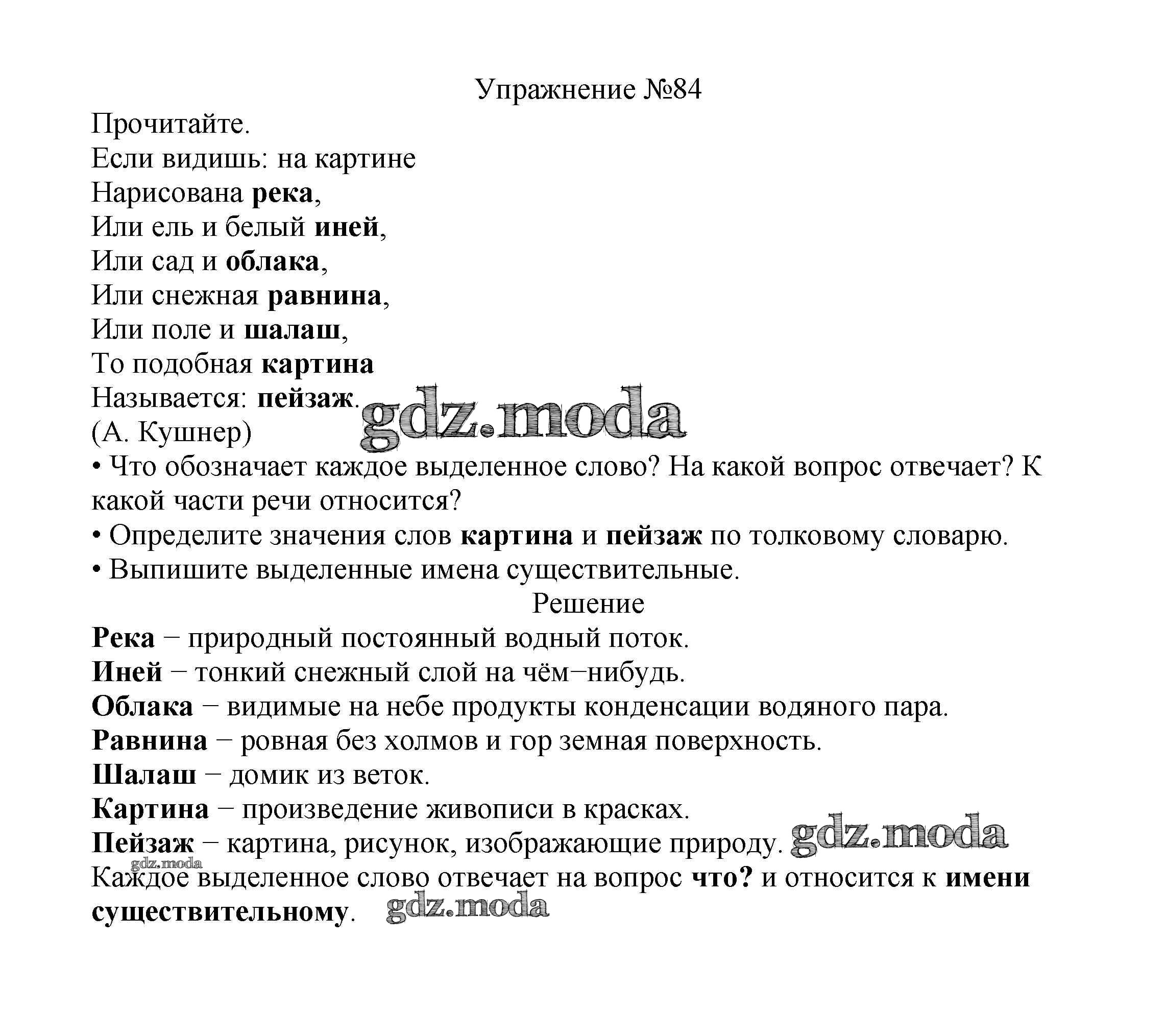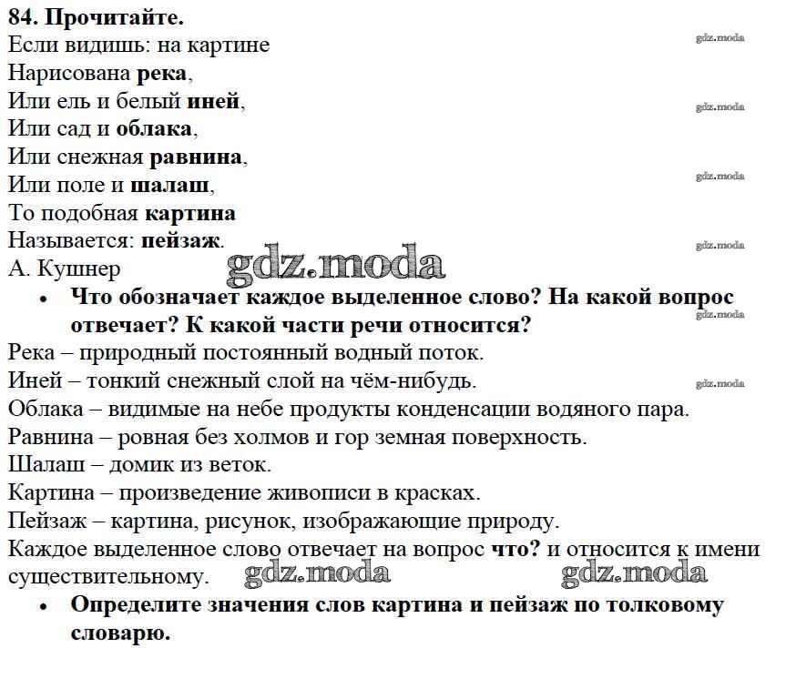 ОТВЕТ на задание № 84 Учебник по Русскому языку 2 класс Канакина Школа России
