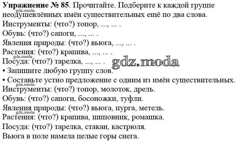 ОТВЕТ на задание № 85 Учебник по Русскому языку 2 класс Канакина Школа России