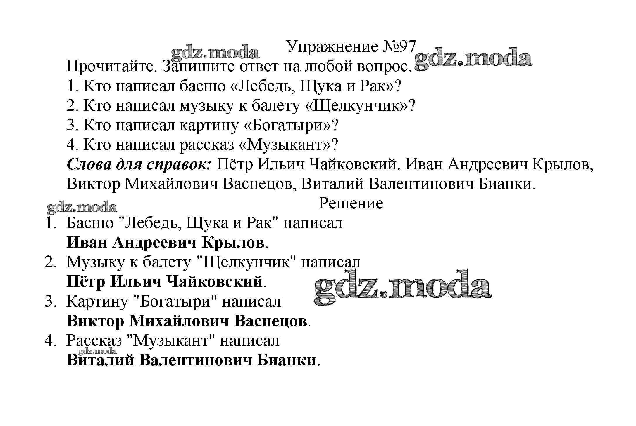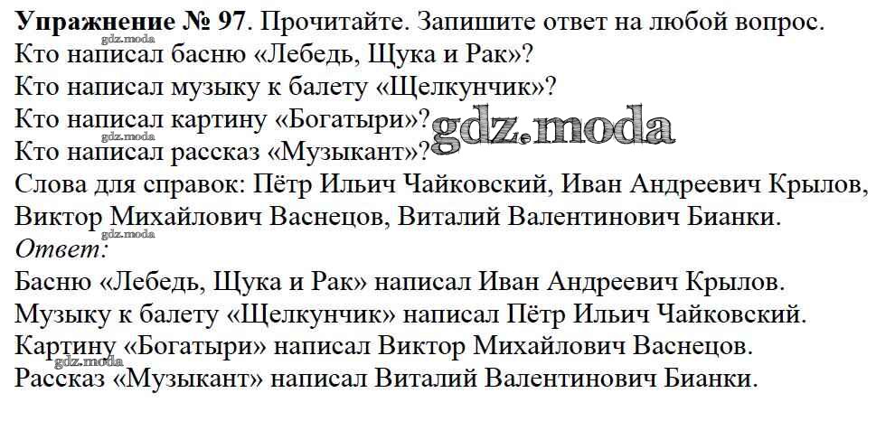 ОТВЕТ на задание № 97 Учебник по Русскому языку 2 класс Канакина Школа России