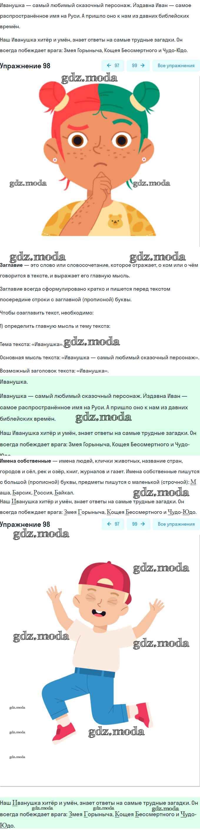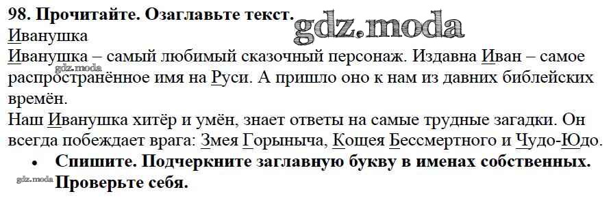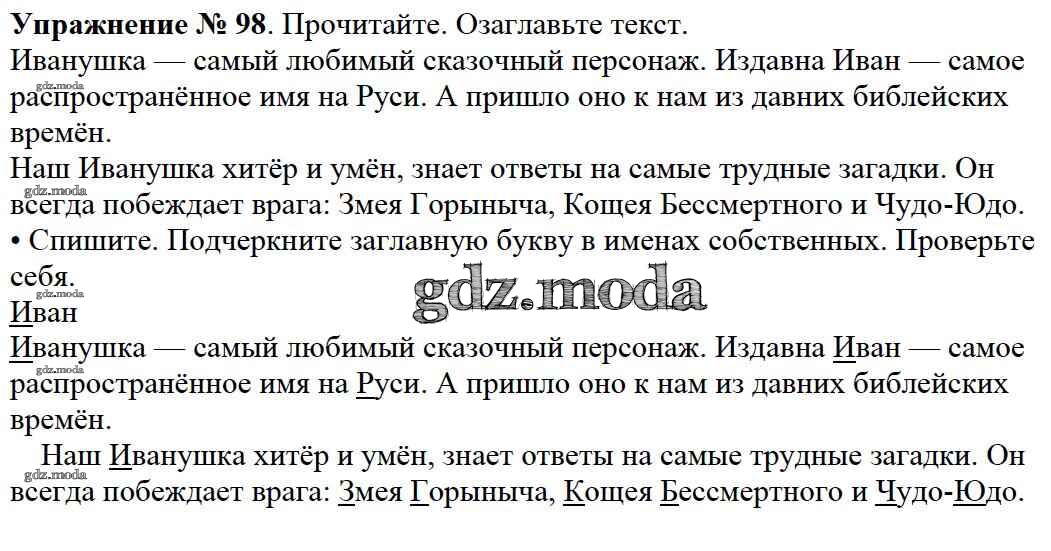 ОТВЕТ на задание № 98 Учебник по Русскому языку 2 класс Канакина Школа России