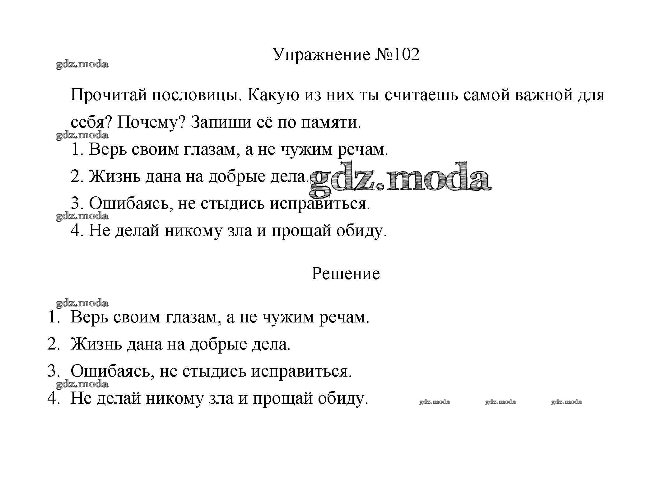 ОТВЕТ на задание № 102 Учебник по Русскому языку 2 класс Климанова Перспектива