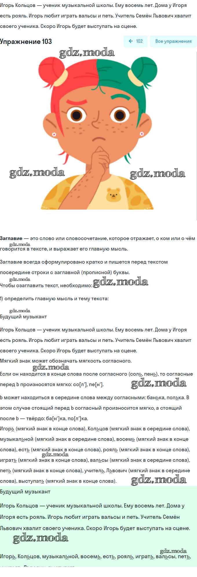 ОТВЕТ на задание № 103 Учебник по Русскому языку 2 класс Климанова Перспектива