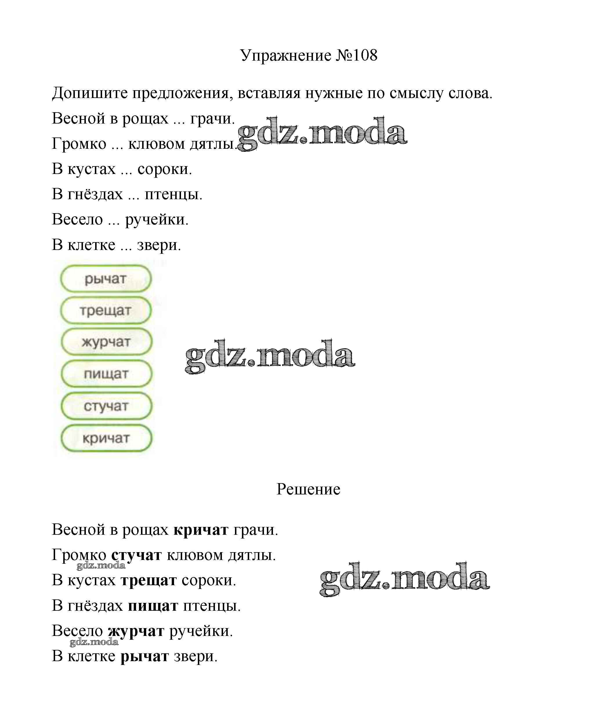 ОТВЕТ на задание № 108 Учебник по Русскому языку 2 класс Климанова Перспектива