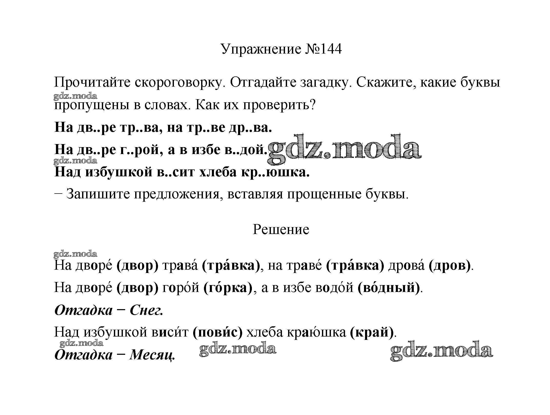 ОТВЕТ на задание № 144 Учебник по Русскому языку 2 класс Климанова Перспектива