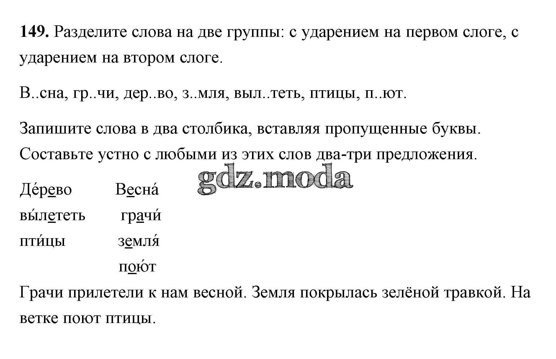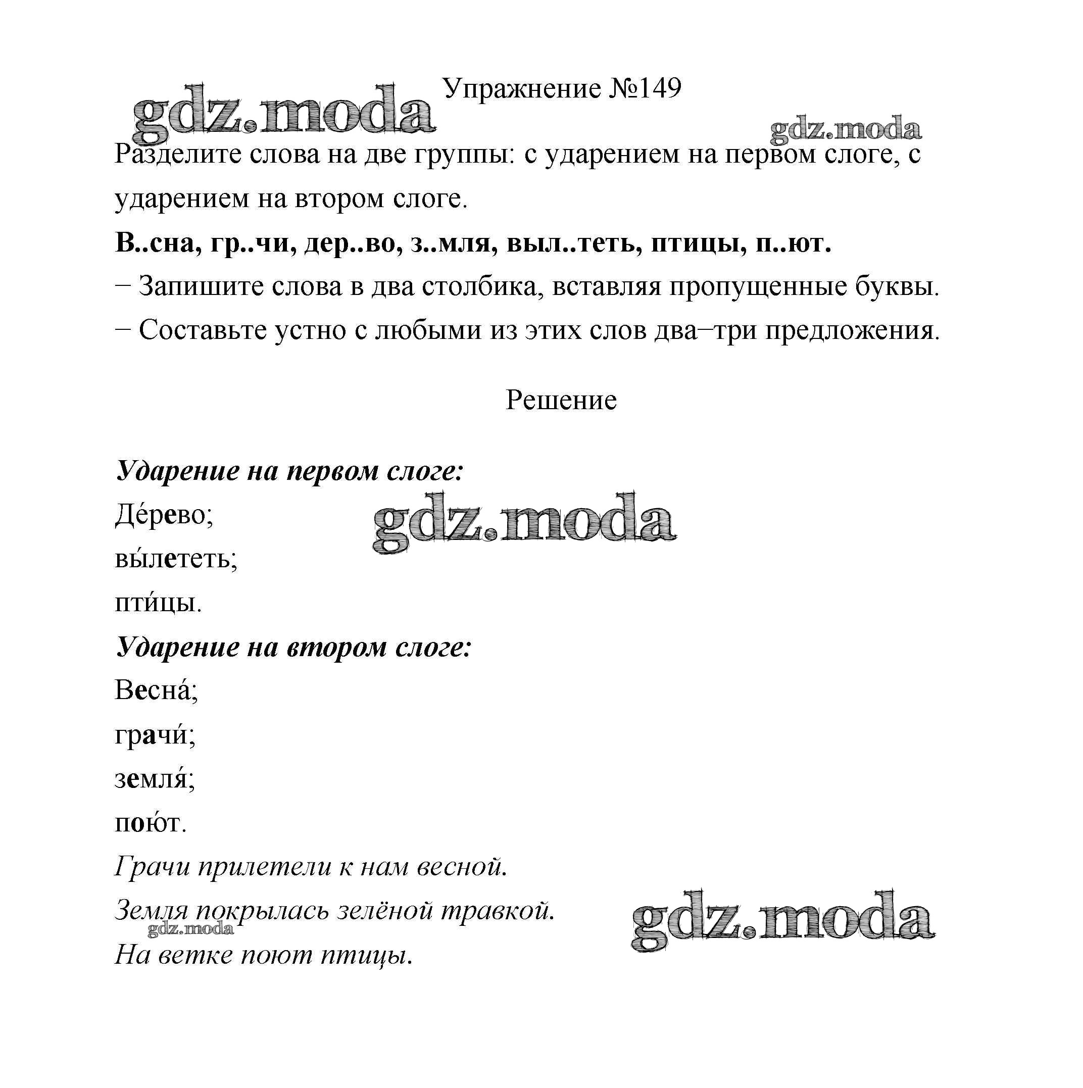 ОТВЕТ на задание № 149 Учебник по Русскому языку 2 класс Климанова Перспектива