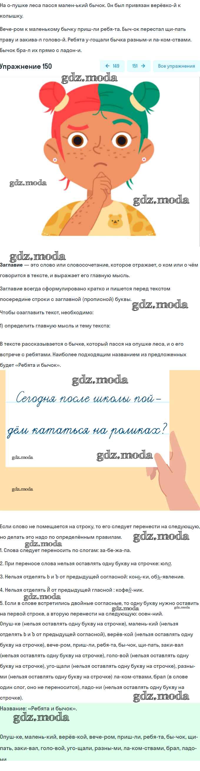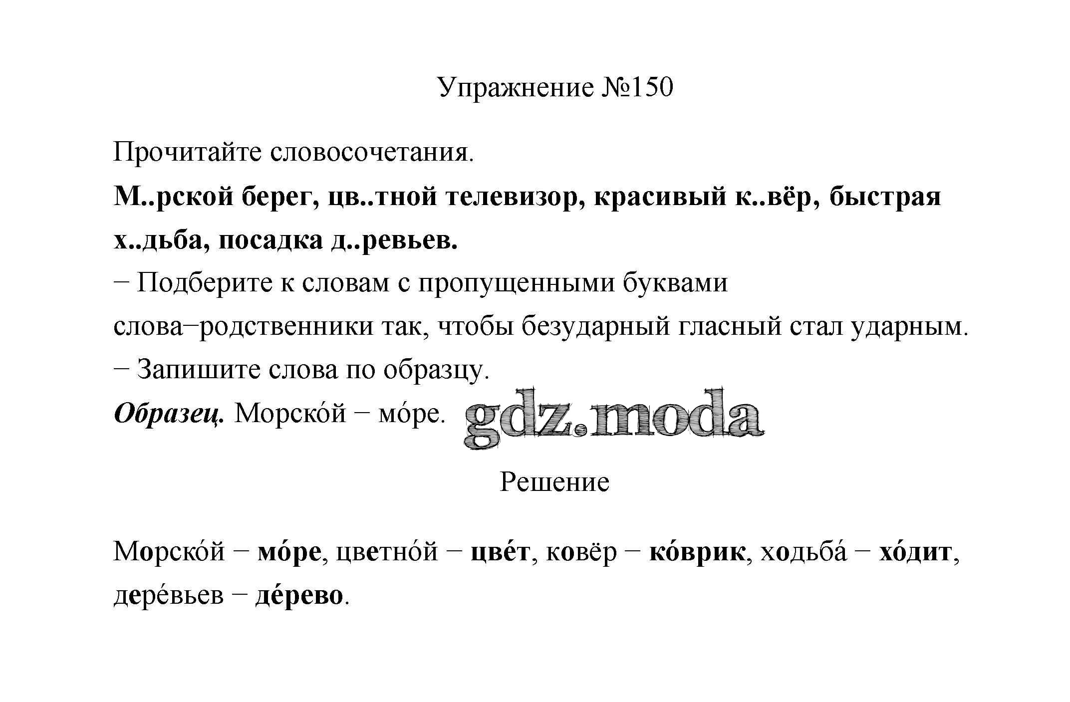 ОТВЕТ на задание № 150 Учебник по Русскому языку 2 класс Климанова Перспектива